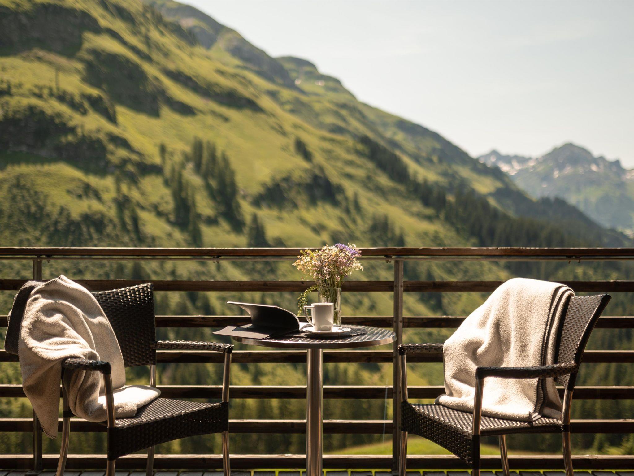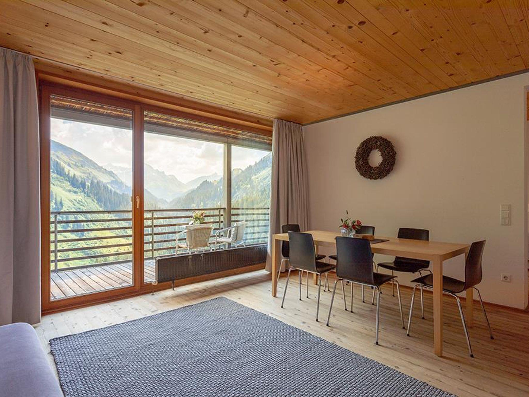 Der lange Südbalkon bietet einen fantastischen Blick nach Lech. Die grossen Glasfronten holen die Natur direkt in Ihr zu Hause auf Zeit. Sonnenaufgang und Sonnenuntergang verbunden mit dieser unglaublichen Ruhe werden zu einem besonderen Erlebnis.