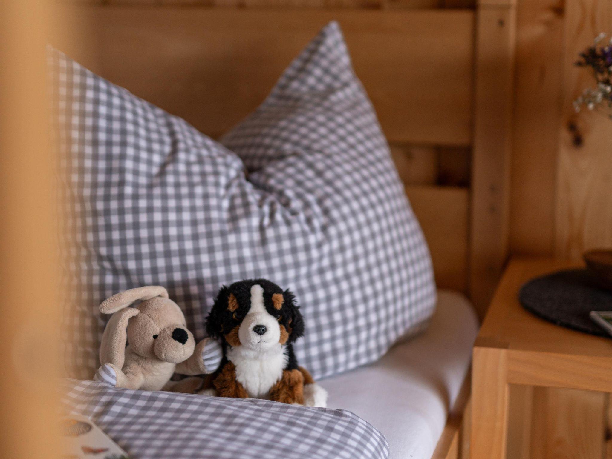 Stimmig ist die schlichte und moderne Ausstattung mit Böden aus Lärchen- und Betten aus Zirbenholz.