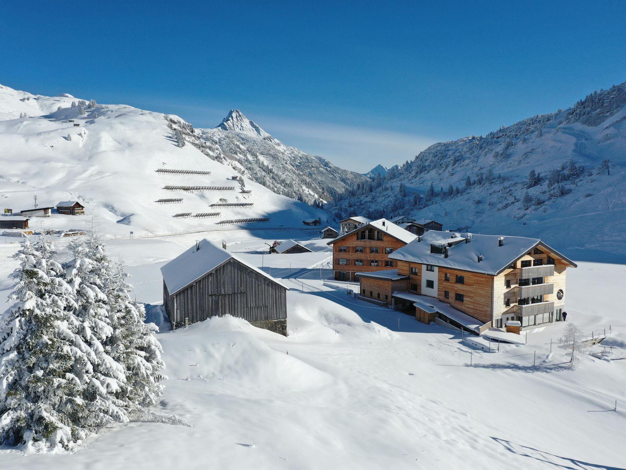 An der Haustüre die Schier anschnallen und die gesamte Schiregion des Arlbergs, von Warth über Lech-Zürs bis St. Anton erkunden. Nach dem Schivergnügen fahren Sie mit den Schi wieder direkt bis zur Haustüre zurück.
