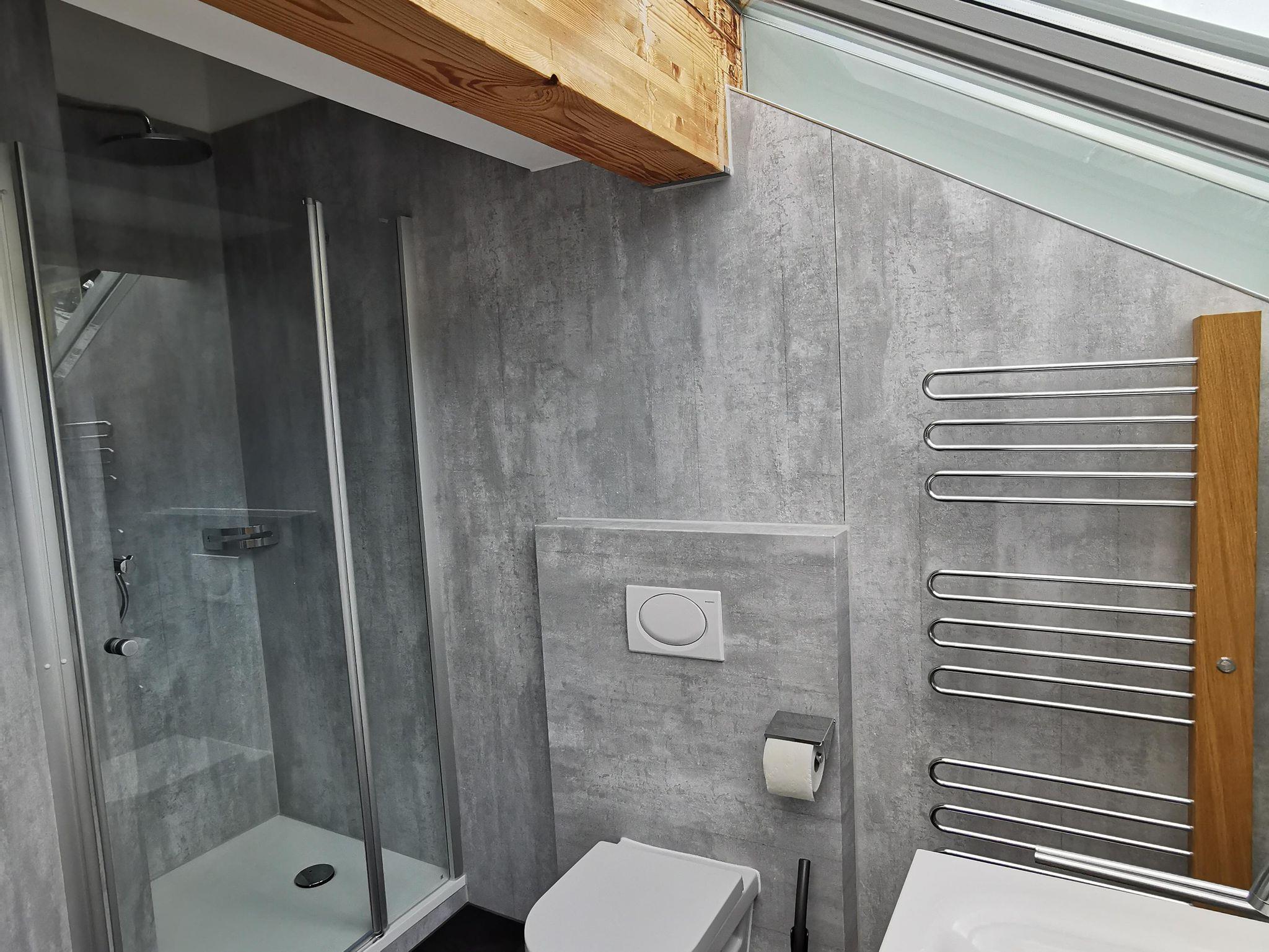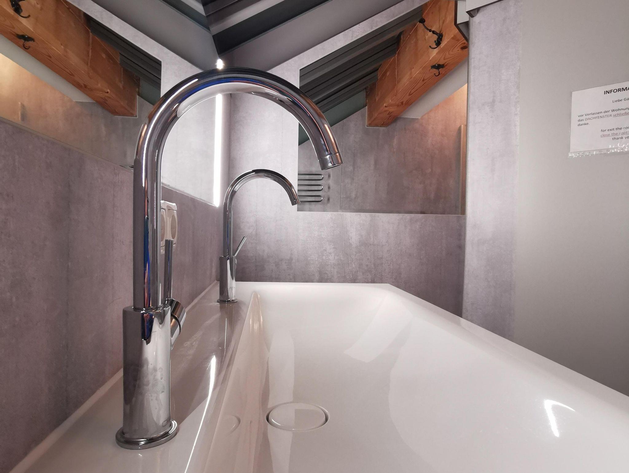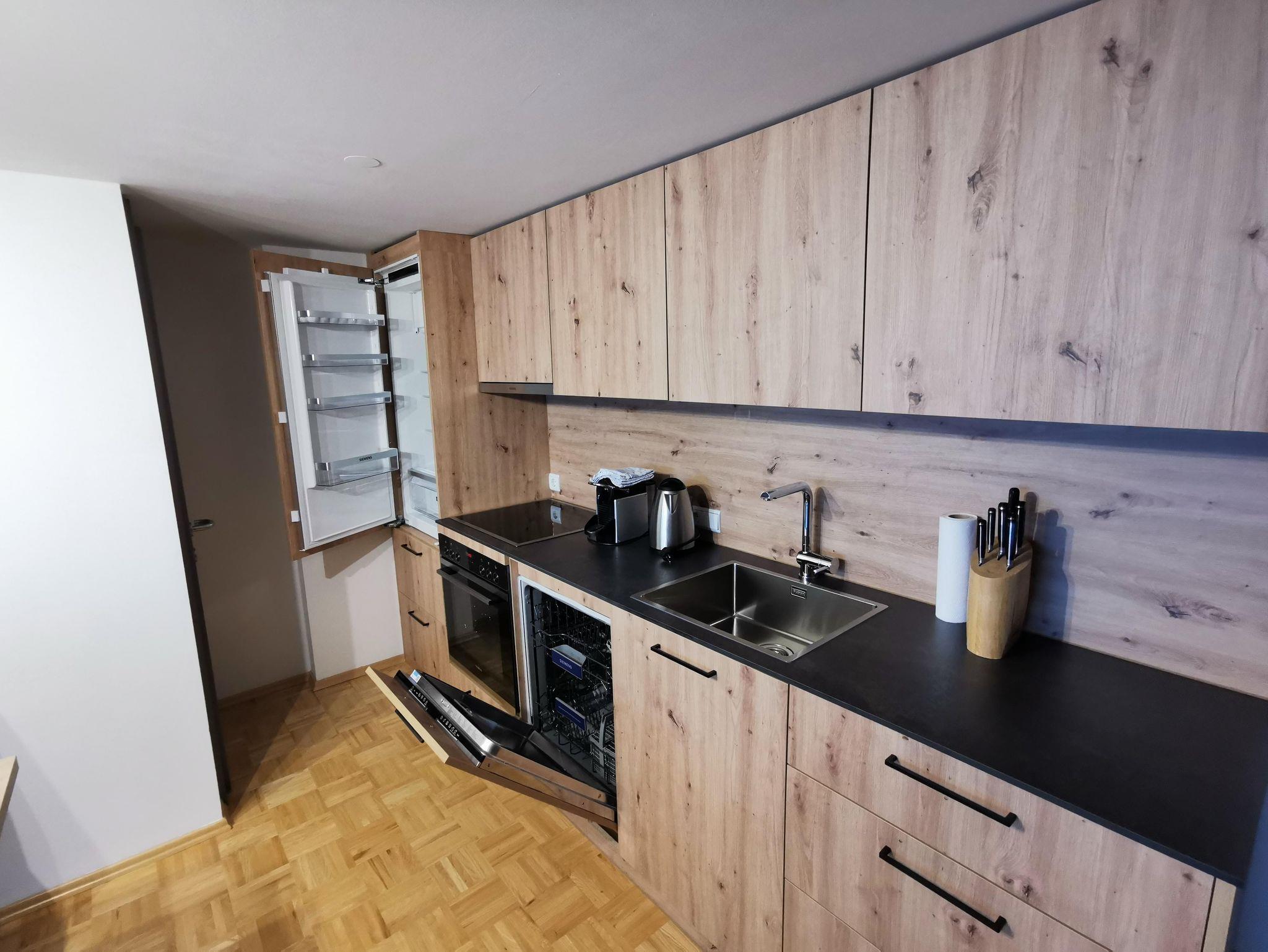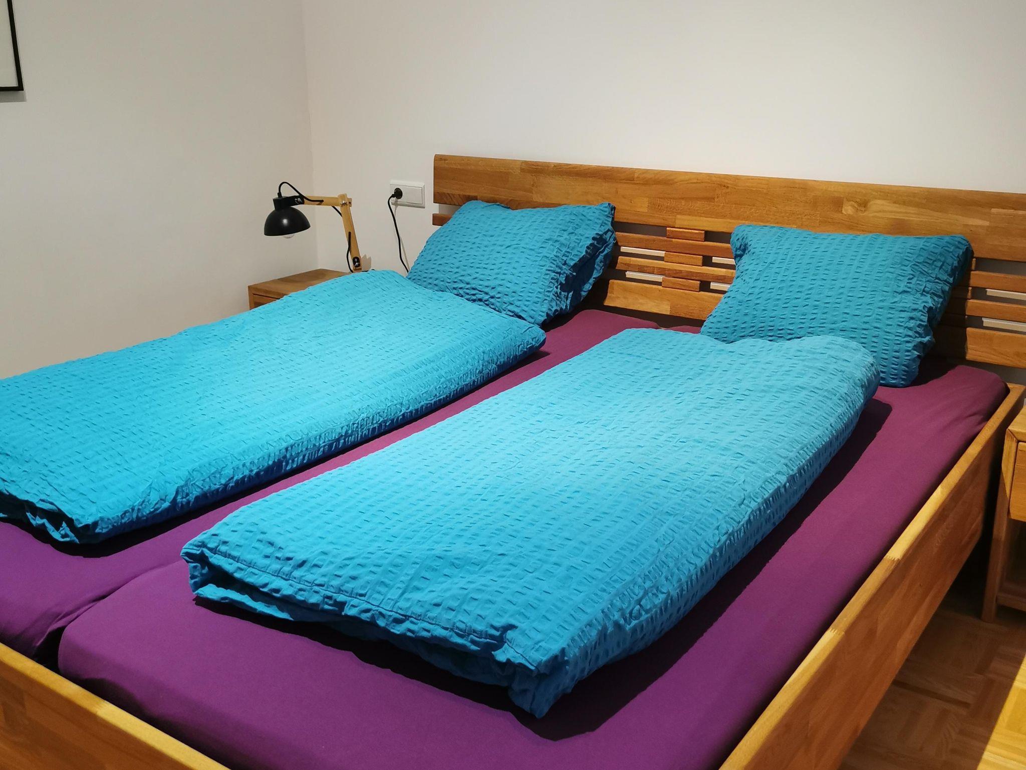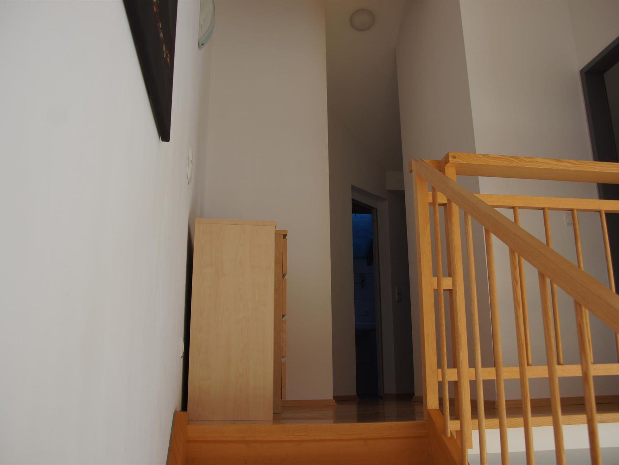 Die Maisonettewohnung ist ca. 70 qm groß. Im Untergeschoß befindet sich eine komplett eingerichtete Wohnküche mit Küchenblock (Spülmaschine, Kühlschrank, Backrohr, 4 Herdplatten, Filterkaffemaschine, Wasserkocher, Eierkocher,...), Tisch mit 5 Stühlen, Garderobe, Couch und TV (123 cm Bilddiagonale), ein Gäste WC und ein Abstellraum mit Waschmaschine. Im Obergeschoß sind 2 getrennte Schlafzimmer, eines mit Doppelbett und das Zweite mit einem französichem Bett (und Dachfenster). Das Bad enthält eine Dusche, WC und Doppelwaschbecken. Bettwäsche, Handtücher und Fön werden gestellt, Handtücher werden einmal in der Woche ausgetauscht.