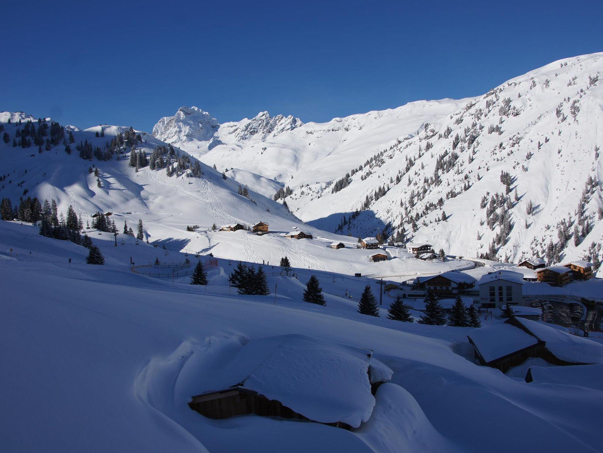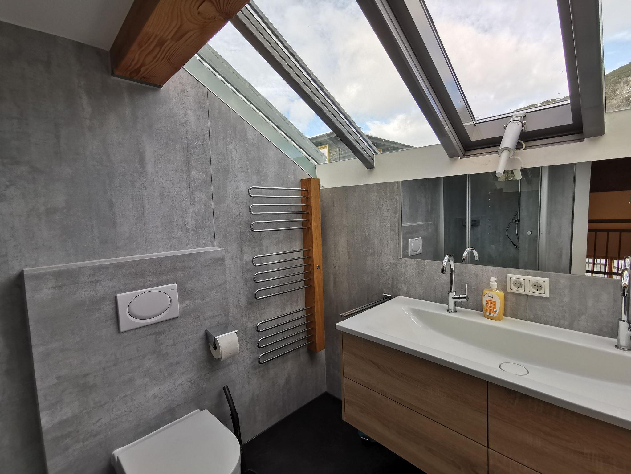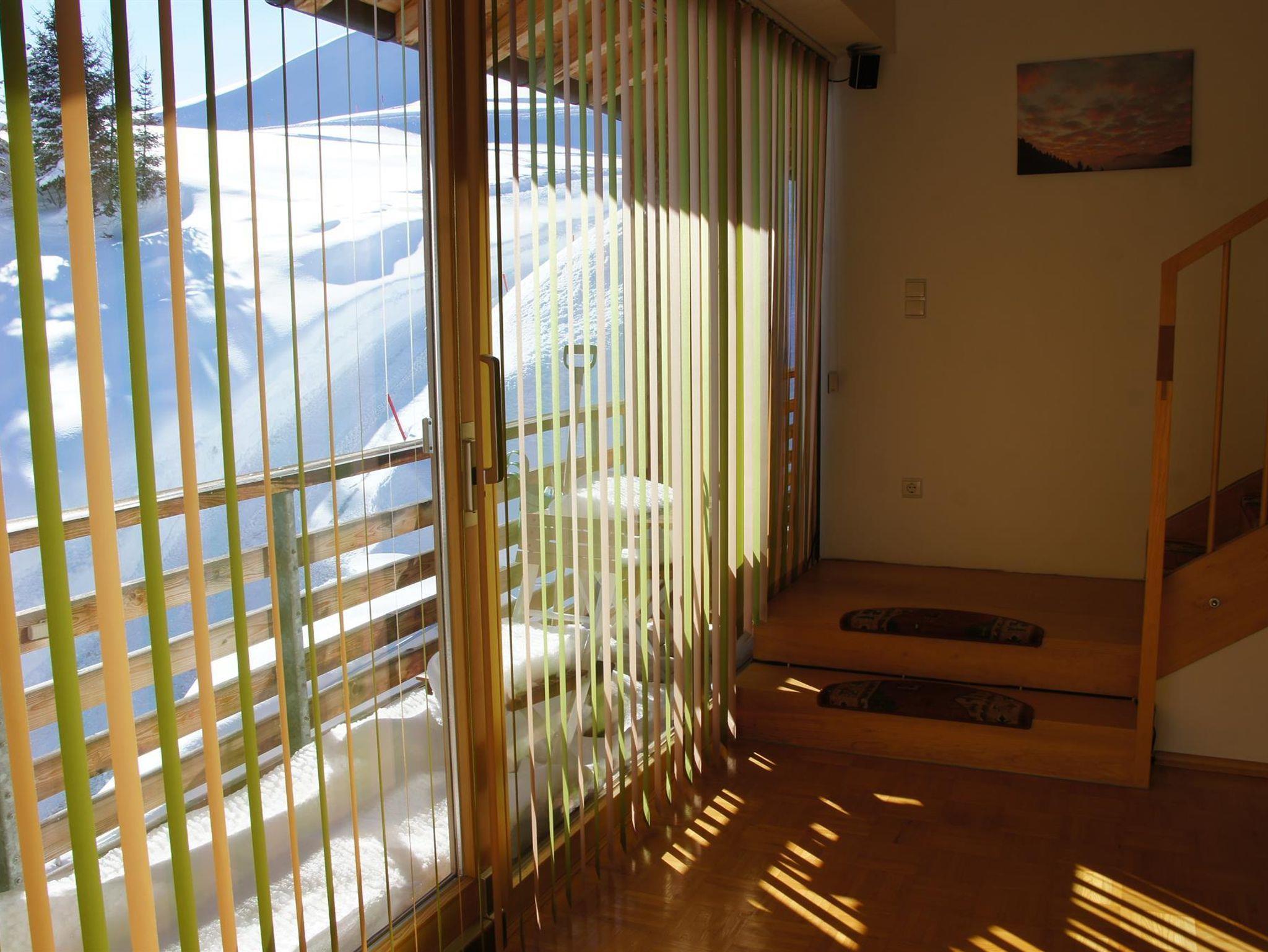 Die Maisonettewohnung befindet sich im zweiten Stock des Gemeindezentrums direkt am Dorfplatz mit der neuen Dorfbahn und Bushaltestelle. Im Gebäude steht Ihnen ein Tiefgaragenplatz zur Verfügung, ein Lift von der Tiefgarage in den zweiten Stock, eine Bank und das Tourismusbüro. Der Skiraum mit Schuhheizung befindet sich im ersten Stock. Die Skipiste geht direkt bis zur Haustüre und auch die Rodelbahn liegt nebenan. Mehrere Restaurants sind zu Fuß in wenigen Minuten erreichbar. Freies Wifi sowie Satelliten- und Kabel TV sind vorhanden (TV Diagonale 123cm). Im unteren Bereich der Wohnung sind eine Wohnküche, ein Abstellraum mit Waschmaschine, eine Garderobe, ein WC und eine Glasfront die auf einen kleinen Balkon mit wundervoller Aussicht führt. Über eine Treppe gelangen Sie in den oberen Stock mit zwei getrennten Schlafzimmern (einmal Standartgröße, einmal mit französischem Bett und Dachfenster) und einem Bad (Dusche, WC, Doppelwaschbecken) mit Dachfenster.