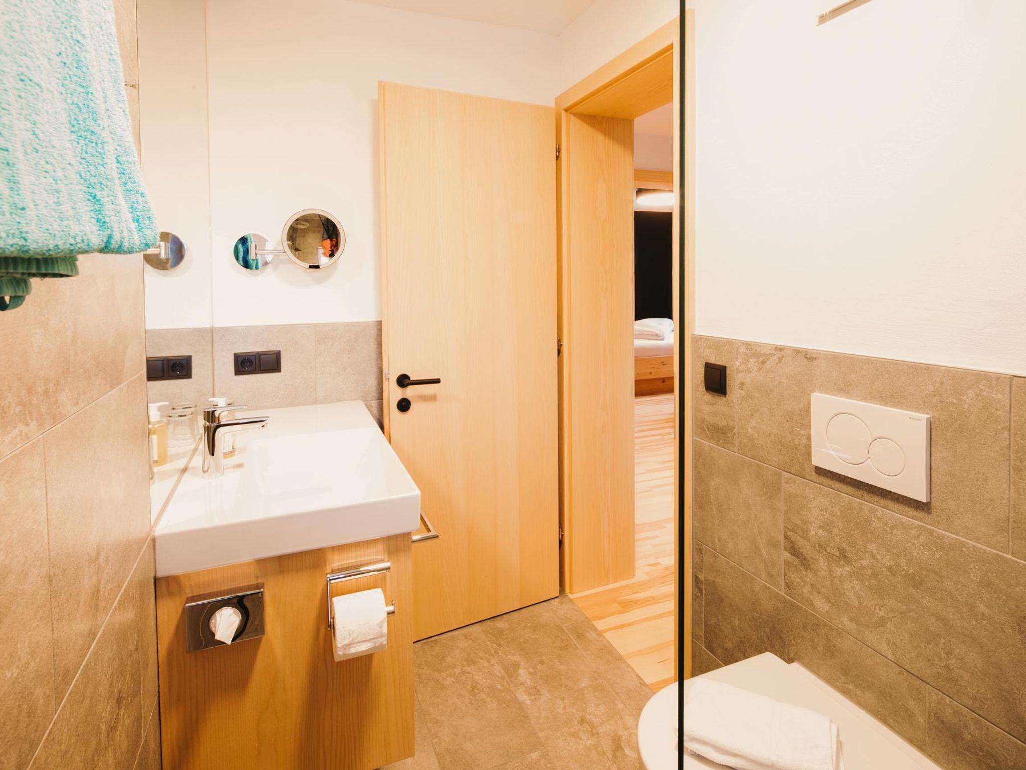 Bis zu 5 Personen einer Familie oder eine kleine befreundete Gruppe finden in den geräumigen Familienstudios Family Alpin Platz. Ein getrenntes Schlafzimmer mit Doppelbett und einem Einzelbett aus Zirbenvollholz sowie ein Wohnbereich mit hochwertiger Schlafcouch für die 4. und 5. Person sorgen für die nötige Erholung. Essbereich mit Kitchenette, Badezimmer mit Walk-In Regendusche und WC, Balkone für sonnige Stunden und panoramareiche Ausblicke. Glasfaser-TV im Schlaf- und Wohnzimmer, Telefon, Safe und kostenloses WLAN.