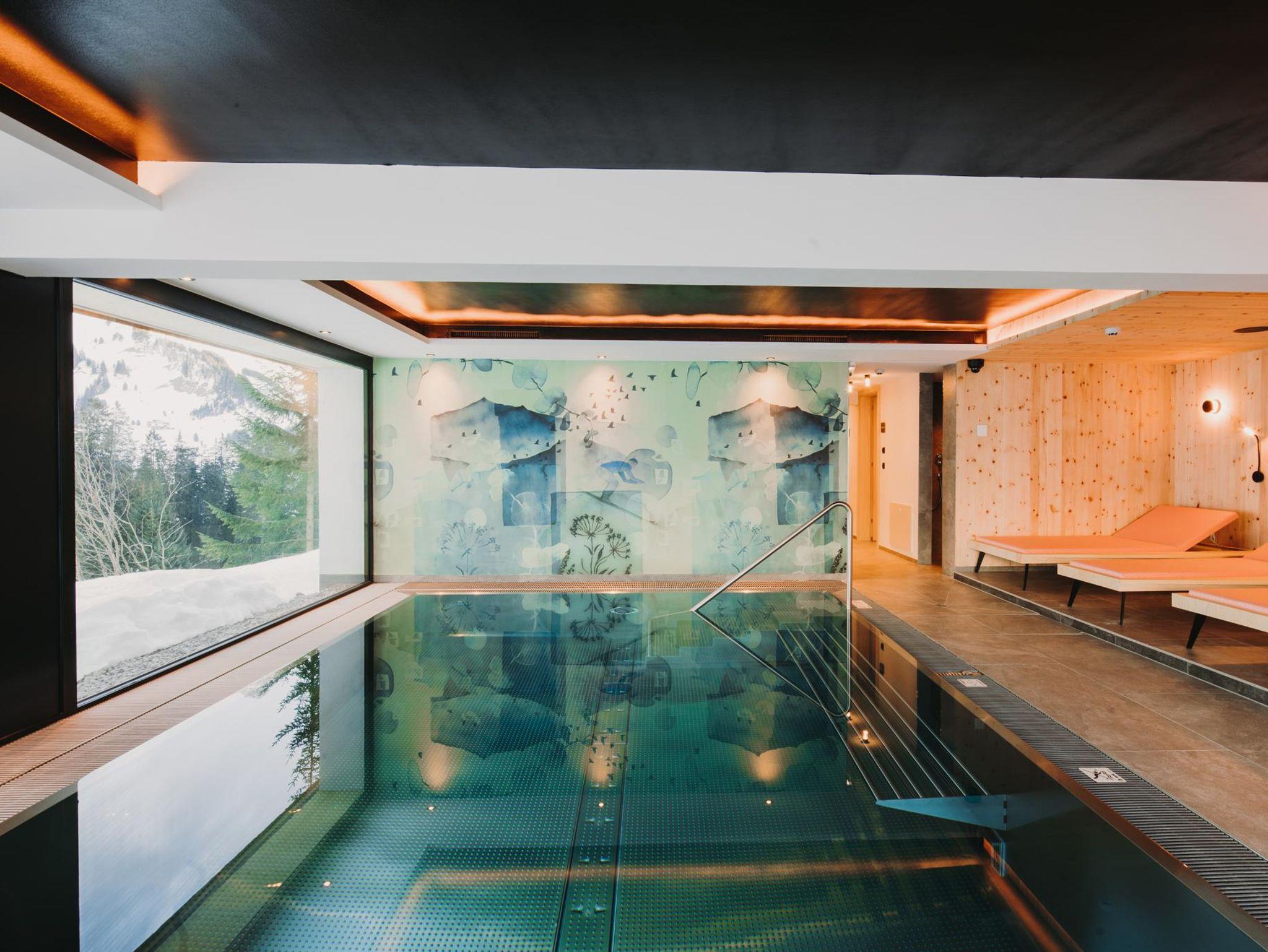 In den Sommermonaten 2020 & 2021 hat sich viel getan, denn unser ehemaliges und beliebtes Kleine Alpin***Hotel garni wurde von grundauf saniert. „Vieles können, nichts müssen“ lautet die Devise in unserem neuen Alpin und soll Euch als Gast vermitteln, dass es bei uns ziemlich unkompliziert und easy abläuft. Die neuen Doppel- und Familienstudios, ausgestattet mit Kitchenetten, laden dazu ein, kleine Gerichte zu kochen oder Speisen aus unserem Genusskühlschrank zu erwärmen. Bei der Einrichtung unserer Studios & Suites haben wir viel Wert auf Natürlichkeit sowie den Baustoff Holz gelegt. Gemütlichkeit gepaart mit Funktionalität war uns wichtig, das helle Eschenholz sorgt sogleich für eine freundliche Atmosphäre. Highlight ist unser neuer Wellnessbereich mit einem Indoor-Erlebnispool mit Liegebereich, einem neuen Saunabereich mit finnischer Sauna, Infrarotkabine und Kräuterdampfbad sowie einem Ruheraum und Frischluftbereich.