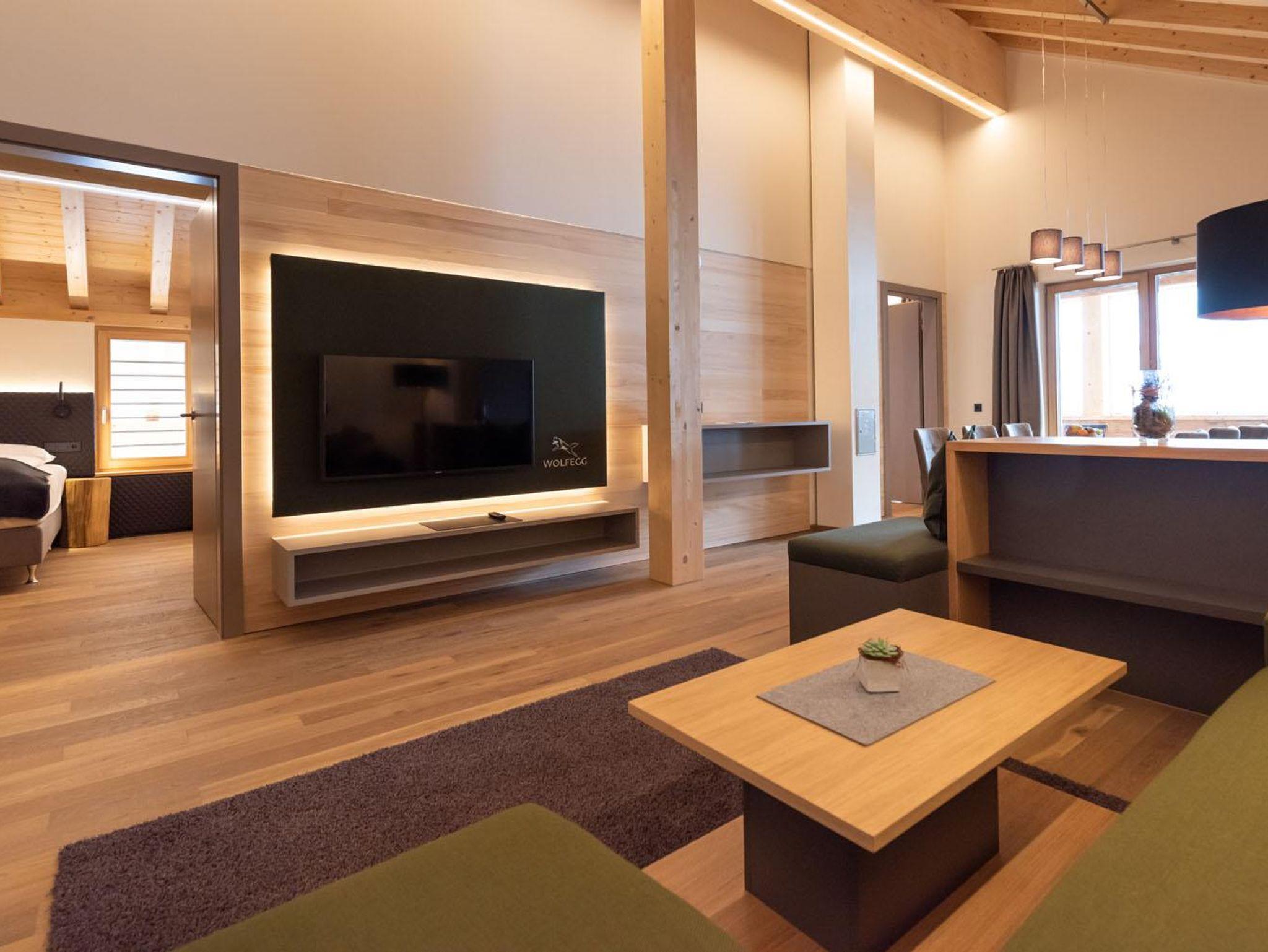 In unseren Dachgeschoss Appartements Ruhe sind Sie den Bergen ganz nah. „ruaba“ und „röschta“ sind beide 75m² groß, verfügen je über 2 Doppelzimmer und 2 Badezimmer mit Dusche, WC, Waschbecken und Handtuchtrockner. Im schönen offenen Wohnraum finden Sie eine voll ausgestattete Küche, mit allem was Sie für den täglichen Gebrauch benötigen. Ebenfalls dürfen Sie sich im Essbereich sowie im Wohnzimmer mit Fernseher und einem Ausgang zum Balkon wie zu Hause fühlen! Jedes Appartement verfügt über einen Stellplatz unter dem Carport.