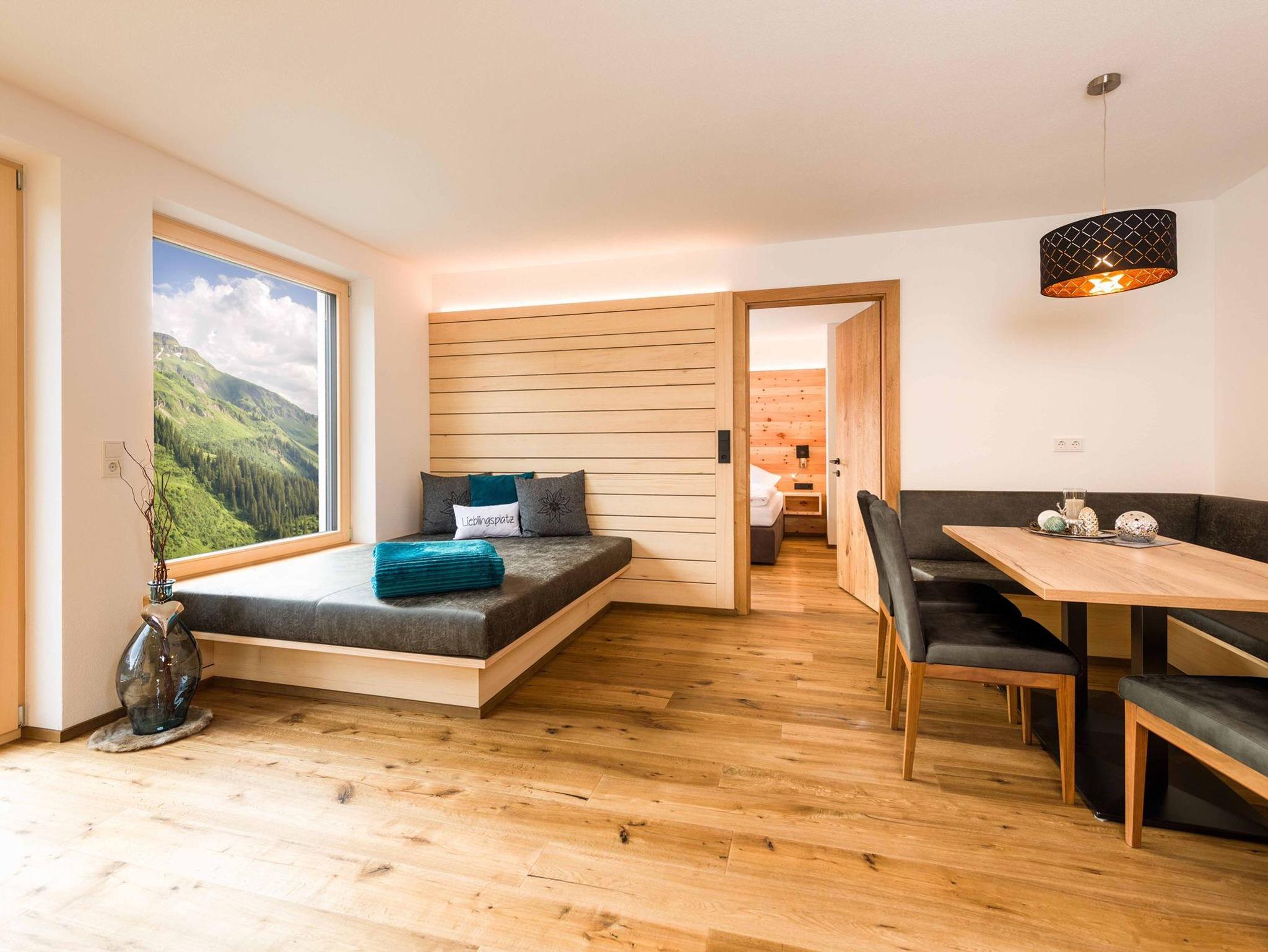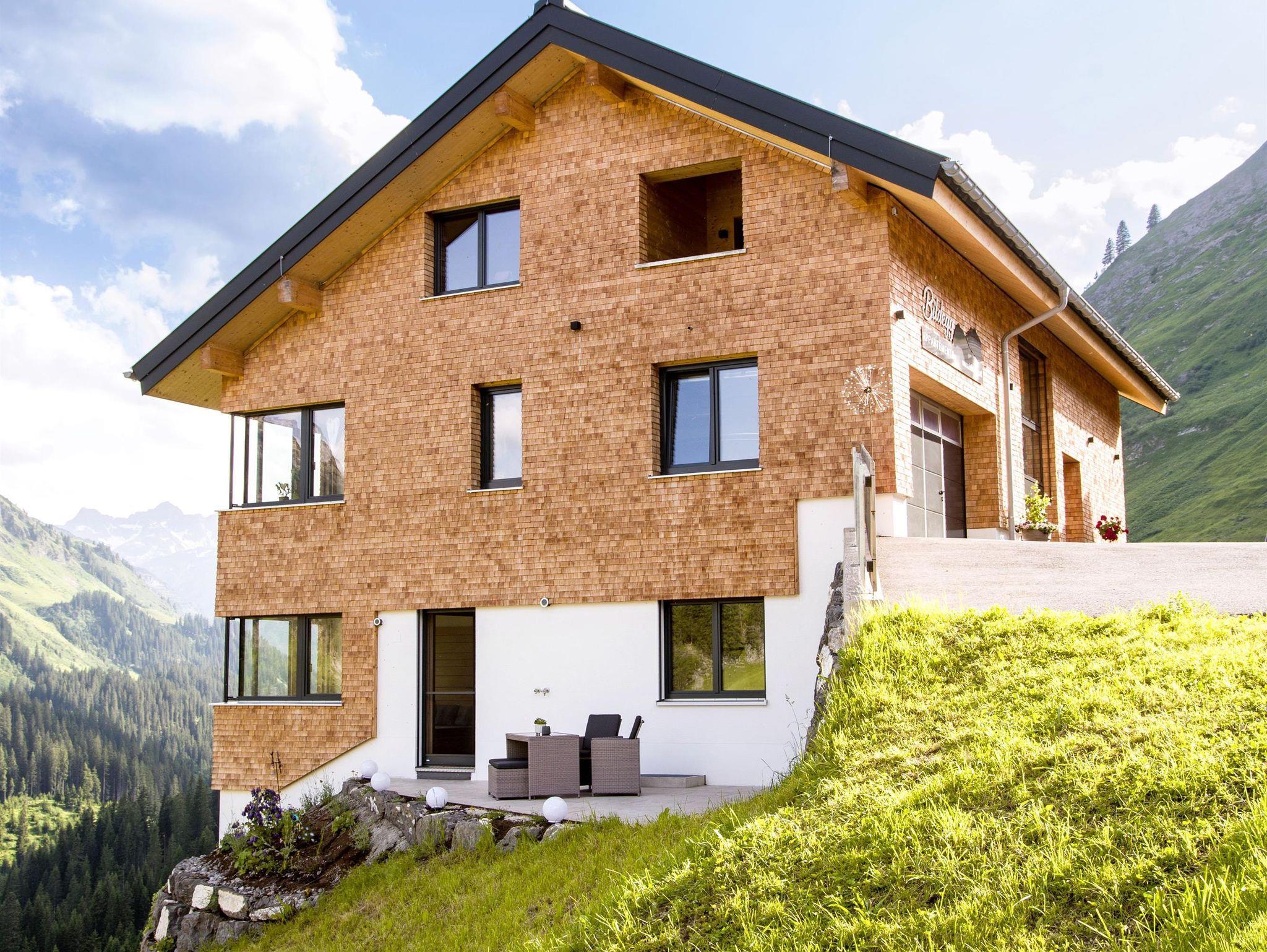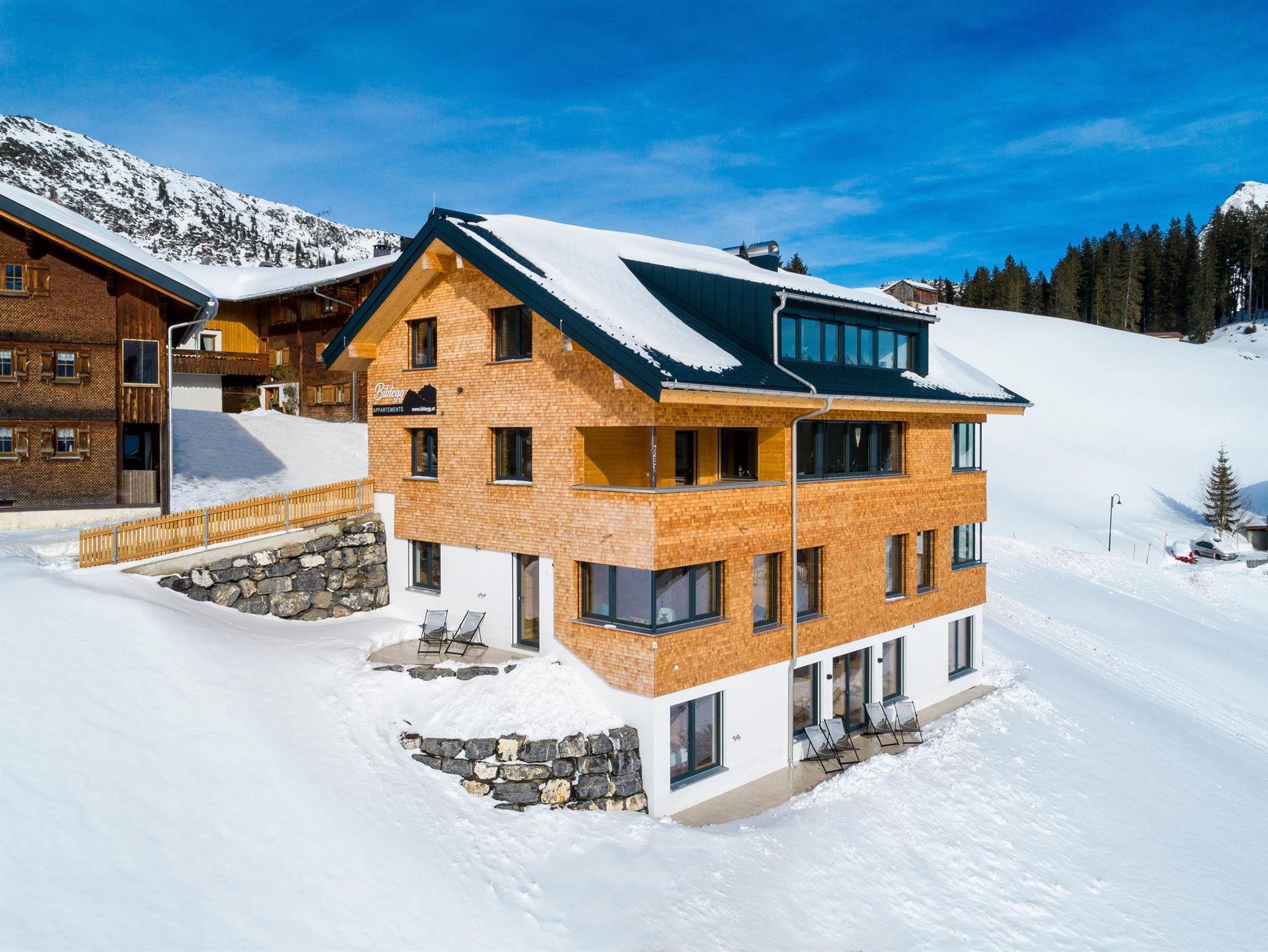 Unser modern eingerichtetes, neu eröffnetes Haus liegt mitten im Skigebiet Warth-Schröcken. Zentral aber in ruhiger Lage können Sie hier ausgiebig die Seele baumeln lassen und sind gleichzeitig nah dran an Natur, Action und Tradition. Jedes der drei Appartements hat zwei Schlafzimmer mit jeweils separatem Badezimmer. Sie eignen sich daher perfekt sowohl für junge Familien als auch für befreundete Paare, die zusammen reisen. Die großzügig geschnittenen Wohnungen verfügen außerdem über eine moderne, komplett ausgestattete Küche, eine große Terrasse mit Traumblick-Garantie und einen eigenen Wellnessbereich mit privater Sauna und Liegewiese mit Panoramafenster.
