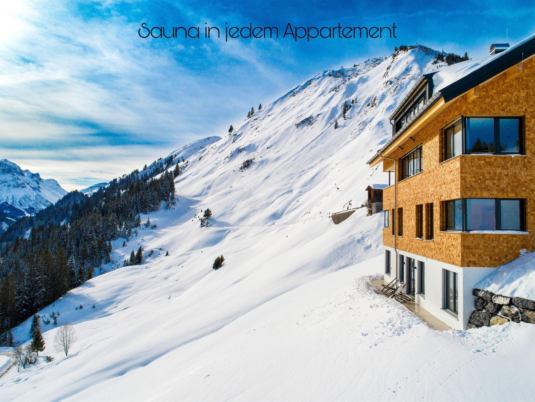 Unser modern eingerichtetes, neu eröffnetes Haus liegt mitten im Skigebiet Warth-Schröcken. Zentral aber in ruhiger Lage können Sie hier ausgiebig die Seele baumeln lassen und sind gleichzeitig nah dran an Natur, Action und Tradition. Jedes der drei Appartements hat zwei Schlafzimmer mit jeweils separatem Badezimmer. Sie eignen sich daher perfekt sowohl für junge Familien als auch für befreundete Paare, die zusammen reisen. Die großzügig geschnittenen Wohnungen verfügen außerdem über eine moderne, komplett ausgestattete Küche, eine große Terrasse mit Traumblick-Garantie und einen eigenen Wellnessbereich mit privater Sauna und Liegewiese mit Panoramafenster.