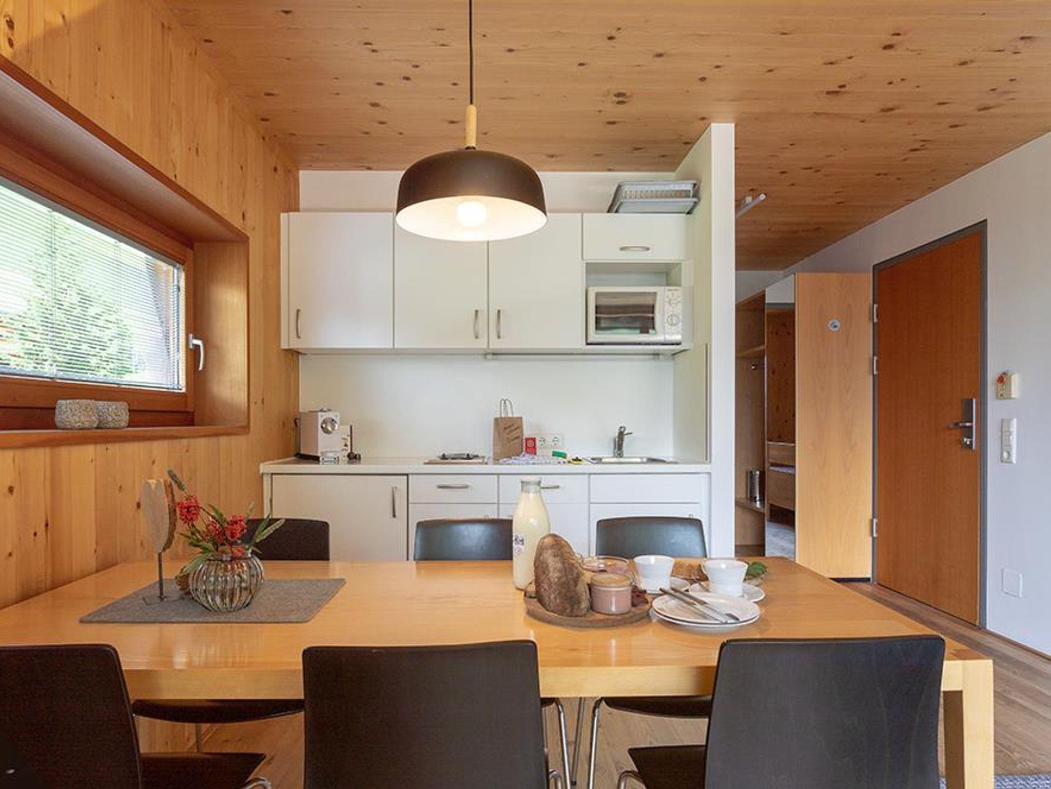 Stimmig ist die schlichte und moderne Ausstattung. Die großen Glasfronten holen die Natur direkt in Ihr zu Hause auf Zeit. Der Boden aus Lärchenholz und die reduzierte Möblierung laden ein, mit allen Sinnen zu geniessen. Hier können sie mit 2 bis 4 Personen ihren Urlaub in Warth, verbringen.