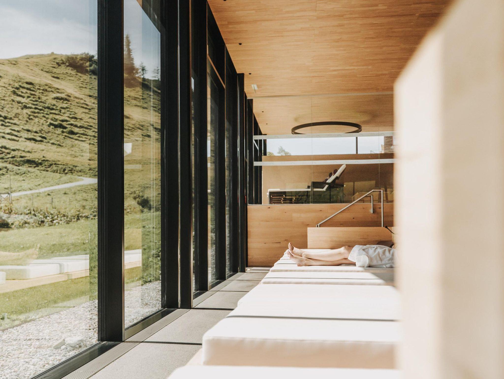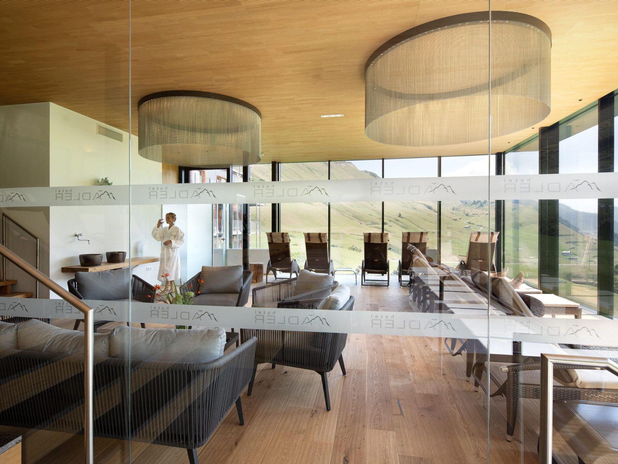 Nach den Aktivitäten im Tiefschnee, auf den Pisten und Wegen wartet die Erholung in unserer großen Saunalandschaft mit dem riesigen Ruhebereich und dem atemberaubenden Blick in die Bergwelt. Haben Sie noch genug Kraft für eine Trainingseinheit in unserem modernen Fitnessbereich?