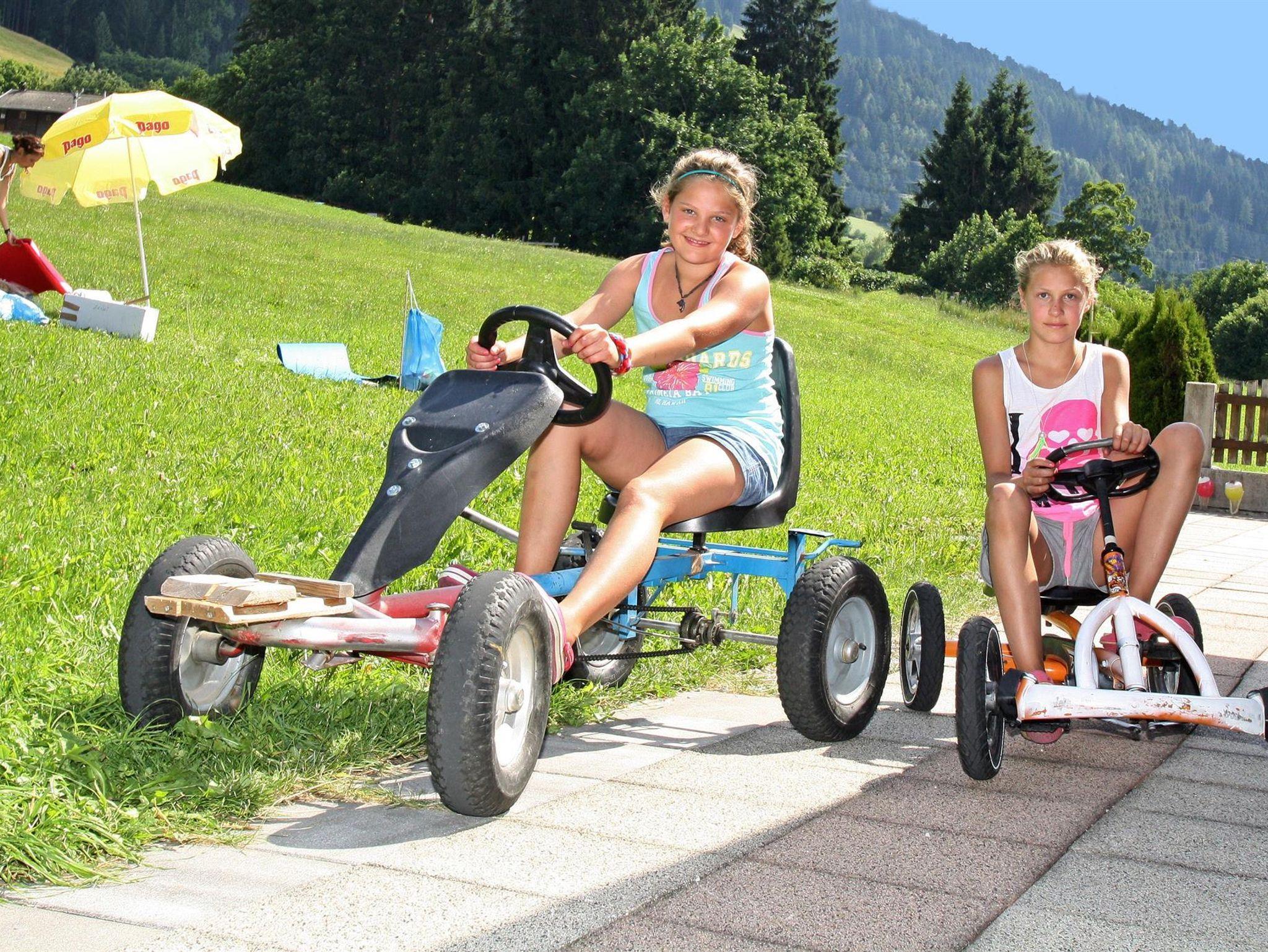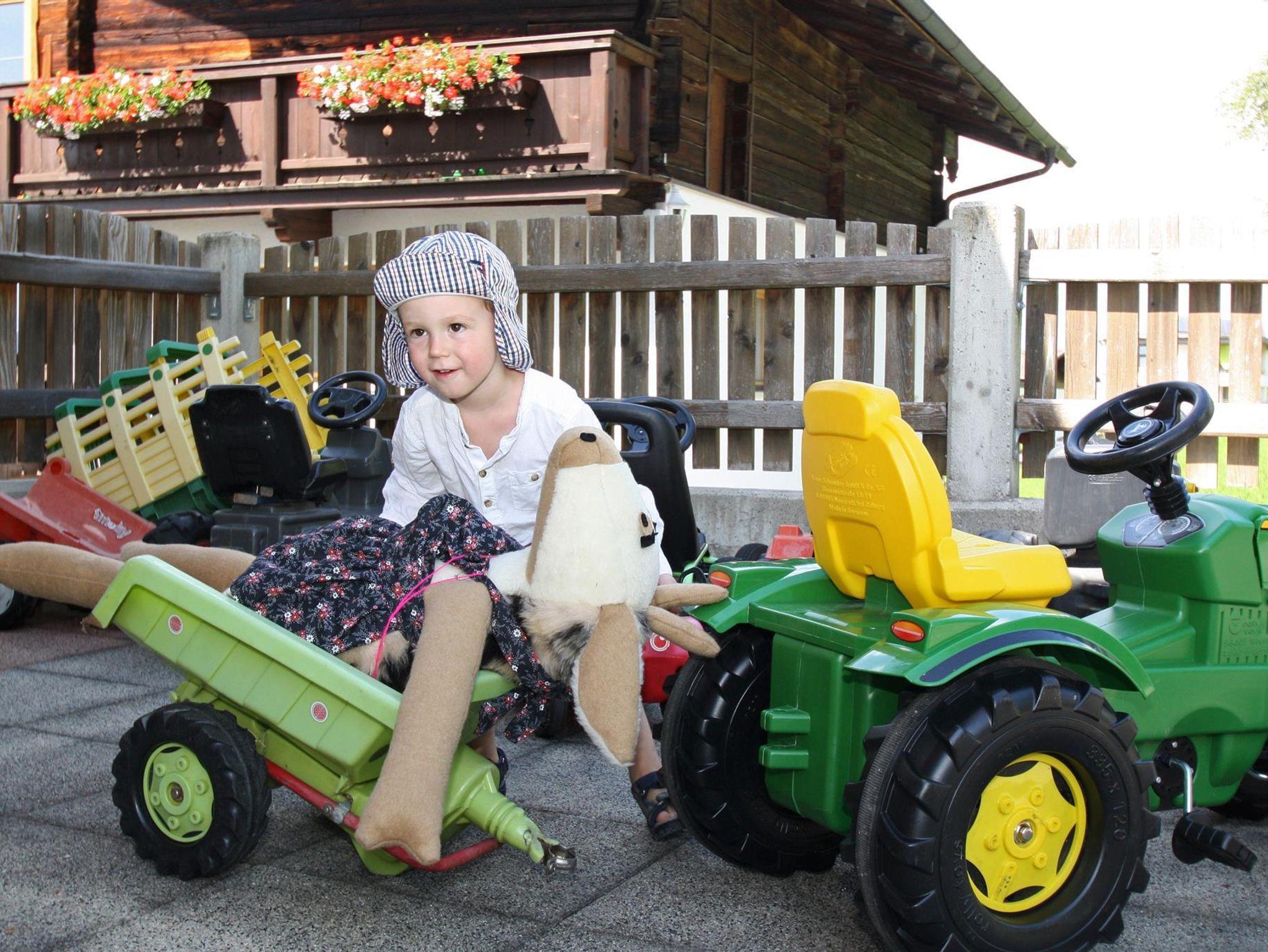 Im Keller kann ein großer Spielraum mit Brettspielen, Kaufladen, Holzeisenbahn, Tischtennis gerne benützt werden. Viele Spielmöglichkeiten im Freien lassen keine Langeweile aufkommen Sandspielplatz, Grillmöglichkeit, Schaukel, Fahrräder und Tretfahrzeuge.