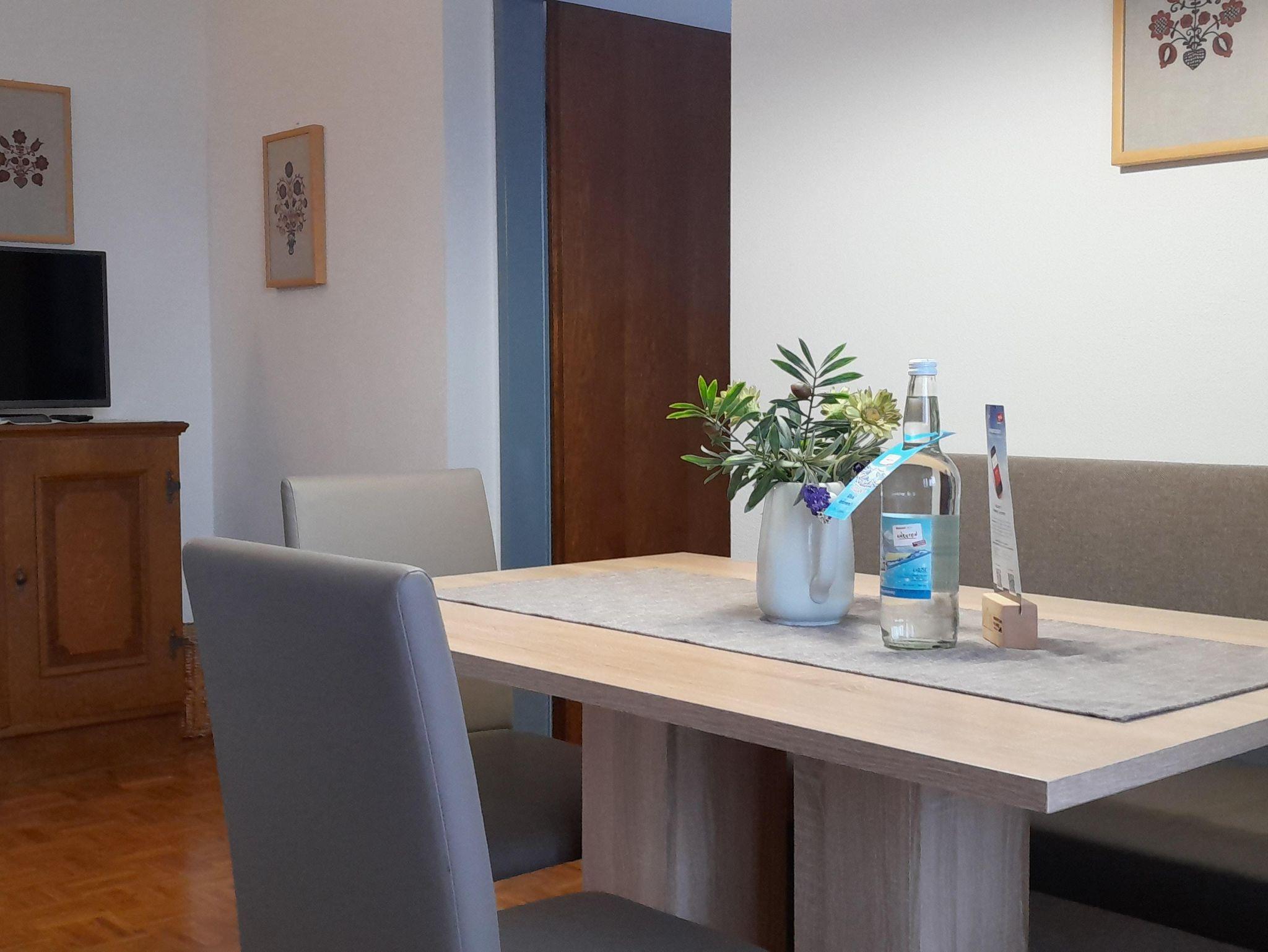 Appartement mit 45 m² im 1. Stock, Küche/Wohnraum mit Schlafmöglichkeit für 2 Personen, 1 Doppelbett/schlafzimmer, WC/Dusche getrennt, SAT-TV, Radio, Telefon, Zimmersafe, Brötchenservice, Balkon, Gratis W-LAN.
