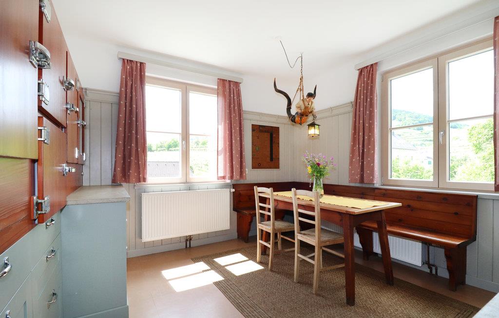 Nyd en vidunderlig udsigt over landskabet, mens du er på ferie i dette feriehus. Huset byder velkommen midt i et malerisk landskab og indbyder til en ferie med aktiviteter i naturen. Lyse værelser med smukke træmøbler gør det til en ideel base for en afslappende tid. Sæt dig godt til rette på køkkenbænken med din morgenkaffe og nyd den vidunderlige udsigt over omgivelserne, det giver lyst til at udforske området yderligere. Tag på vandretur, det smukke landskab i Kremstal og Wachau, præget af vinmarker, byder på en vidunderlig udsigt over Donau. Krems an der Donau tiltrækker med slotte, paladser og museer. Glæd dig til en afvekslende ferie i dette feriehus!