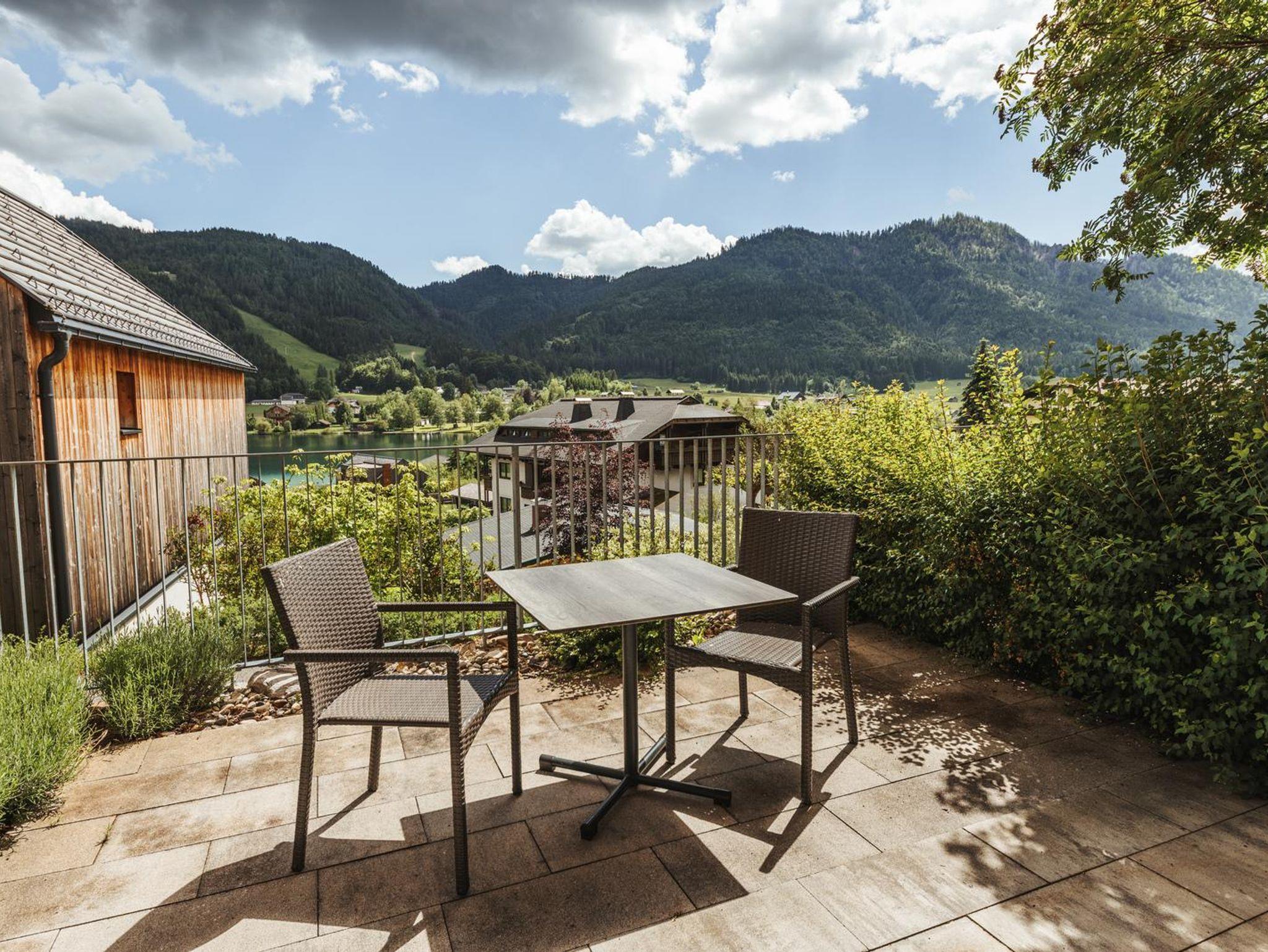 • Panorama-Seeblick & private Süd-Terrasse (12m²) mit Sitzbereich und Sonnenliegen