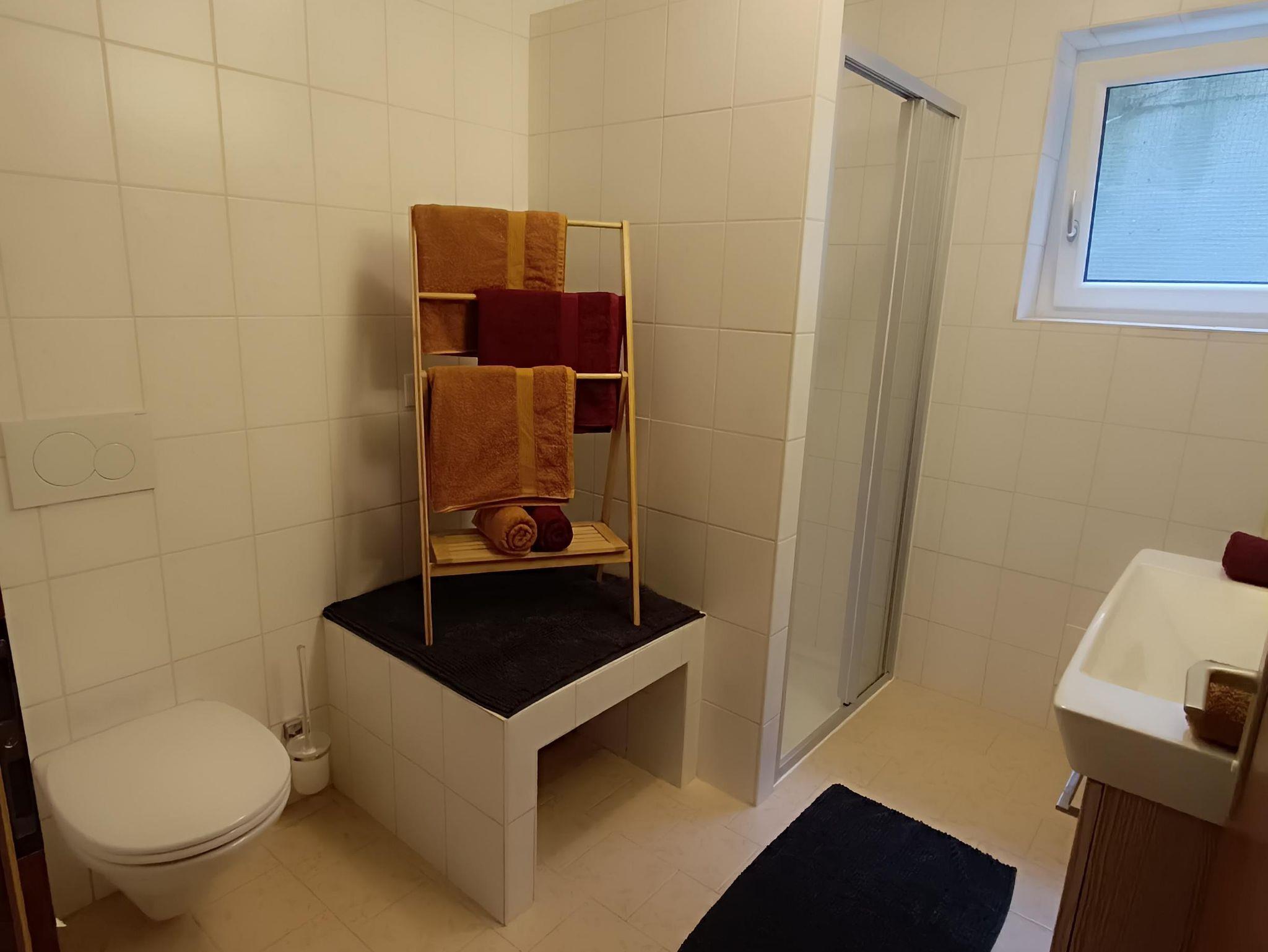 Unser über 120m2 großes Apartment bietet Platz für bis zu 7 Personen. Es verfügt über 2 Doppelzimmer mit WIFI TV und 1 Dreibettzimmer mit Stockbett und Einzelbett.