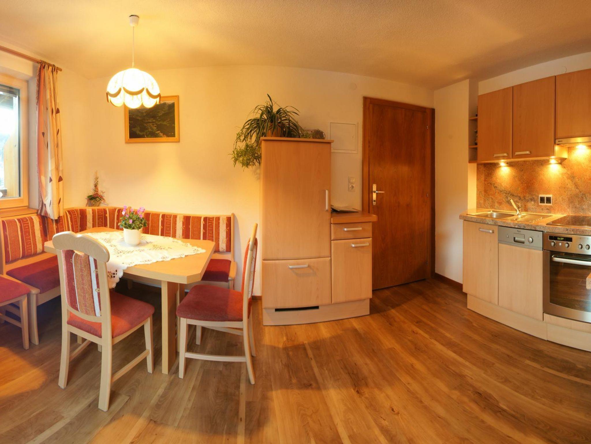 Komfortferienwohnung Panoramablick 75 m2: 1 Dreibettzimmer mit Dusche, WC und Balkon 1 Doppelzimmer mit Dusche und WC natürliche und gesunde Ausstattung mit heimischem Zirbenholz komfortable Wohnküche mit allen Geräten, Radio und SAT-TV Balkon nach Osten, Süden und Westen umfangreiche Baby- und Kleinkinderaustattung Kinderspielzimmer mit vielen Spielsachen im Erdgeschoß Brötchenservice