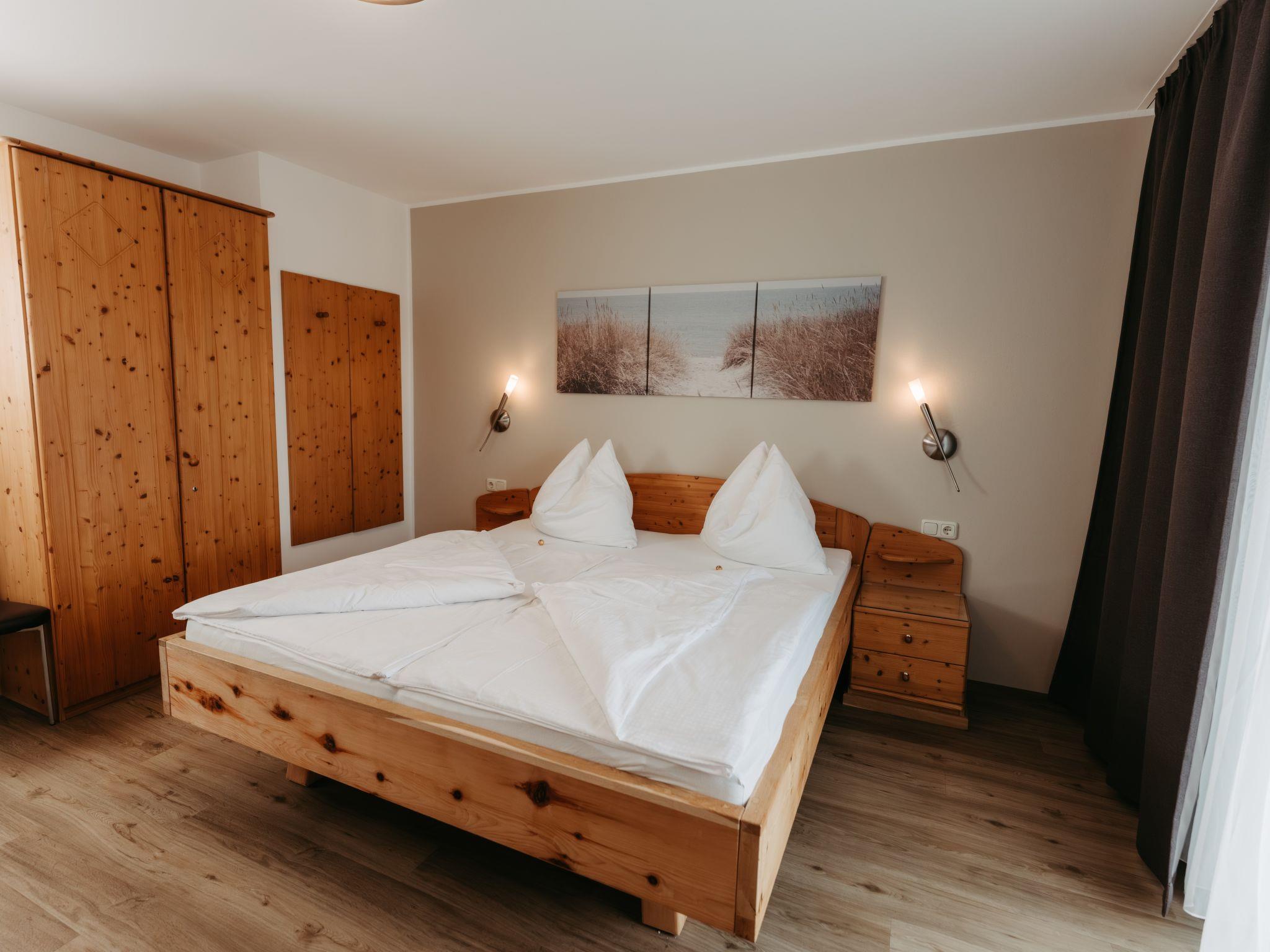 4-room apartment 108 m2 on 1st floor. Comfortable and cosy furnishings: entrance hall. 1 room with 2 beds (length 190 cm). 2 double bedrooms, each room with shower/WC. Exit to the balcony. Kitchen-/living room (oven, dishwasher, 4 ceramic glass hob hotplates, toaster, kettle, microwave, freezer, electric coffee machine) with dining nook and satellite TV. Exit to the balcony. Shower/WC. Large balcony. Balcony furniture, deck chairs. View of the mountains and the countryside. Facilities: hair dryer. Internet (WiFi, free). Please note: non-smokers only. Private entrance, smoke alarm, fire extinguisher. 50416-0022-1417
