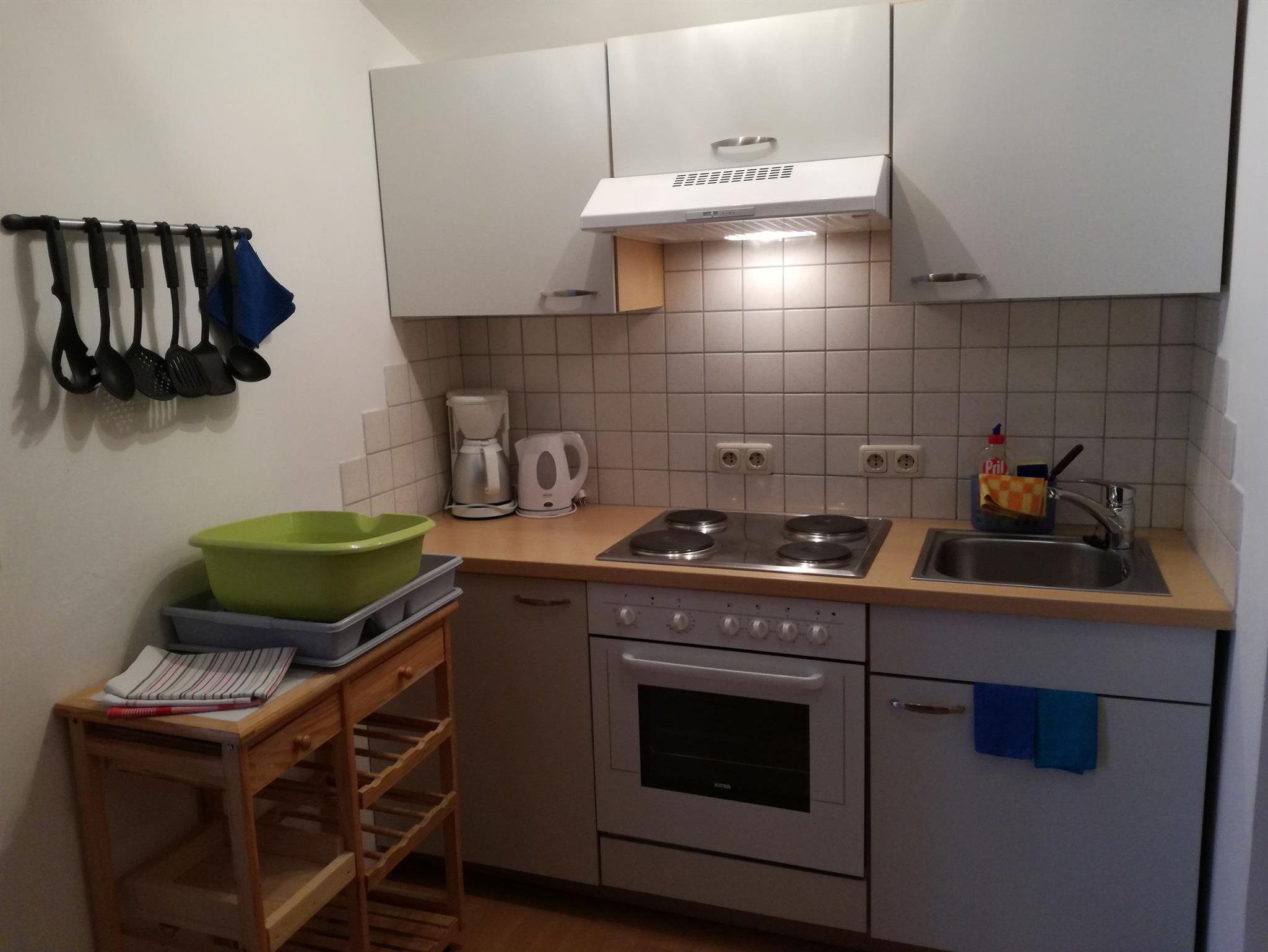 -- Kochnische: E-Herd mit Backrohr, Kühlschrank mit Gefrierfach, Abwasch, Kaffeemaschine, Wasserkocher, Toaster