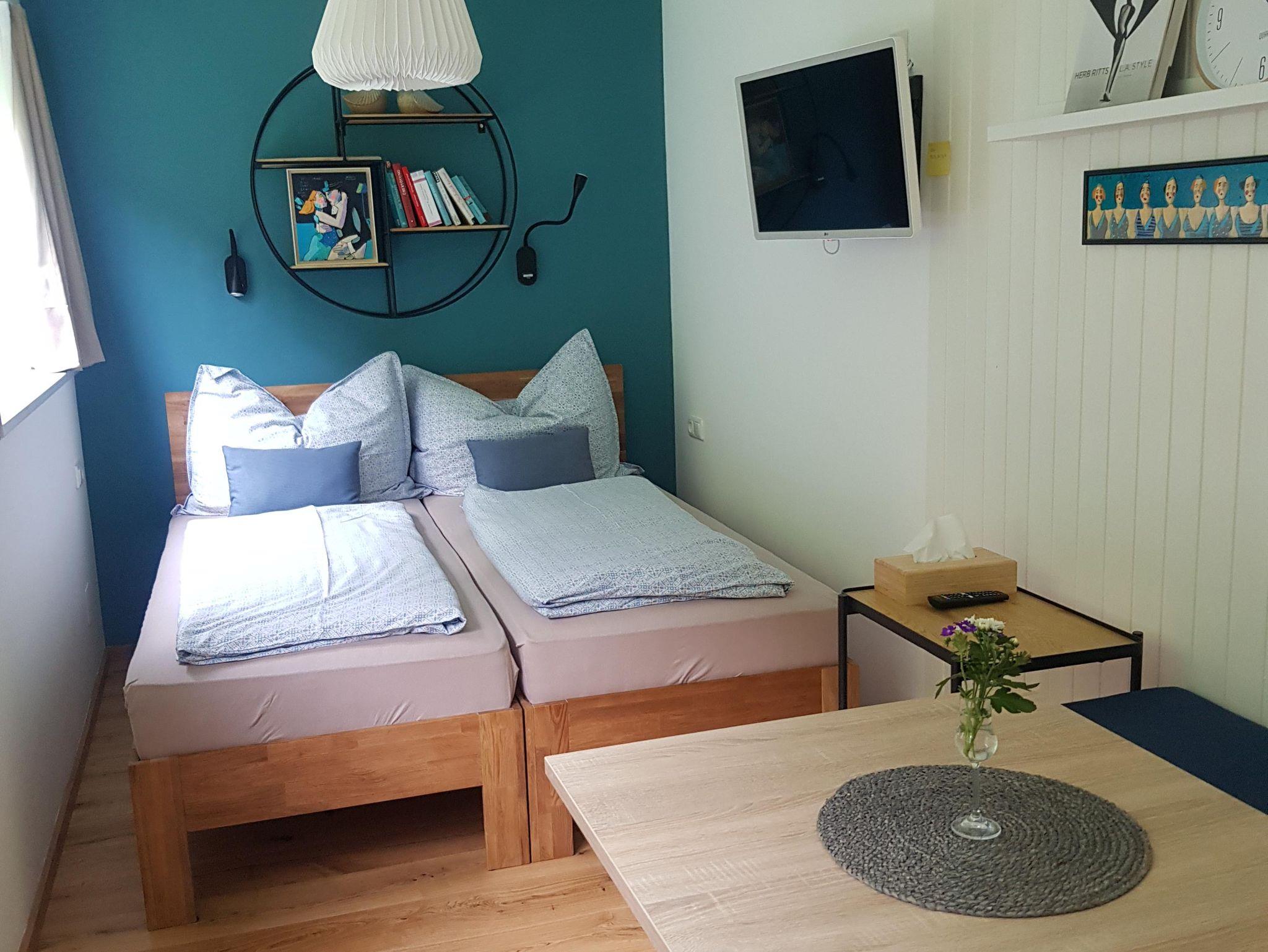 Das Doppelzimmer Appartement ist mit 1 Kingsizebett und einem Einzelbett ausgestattet.