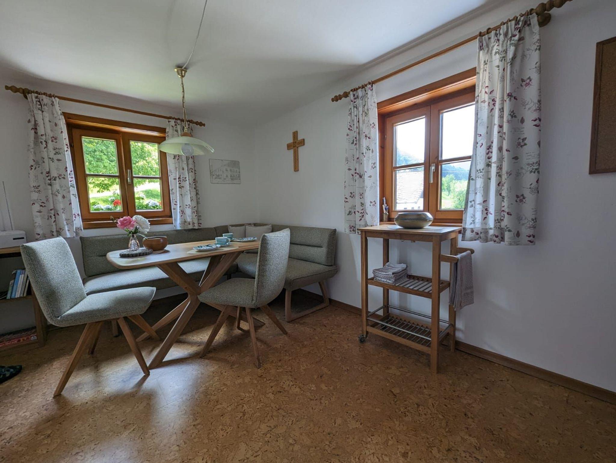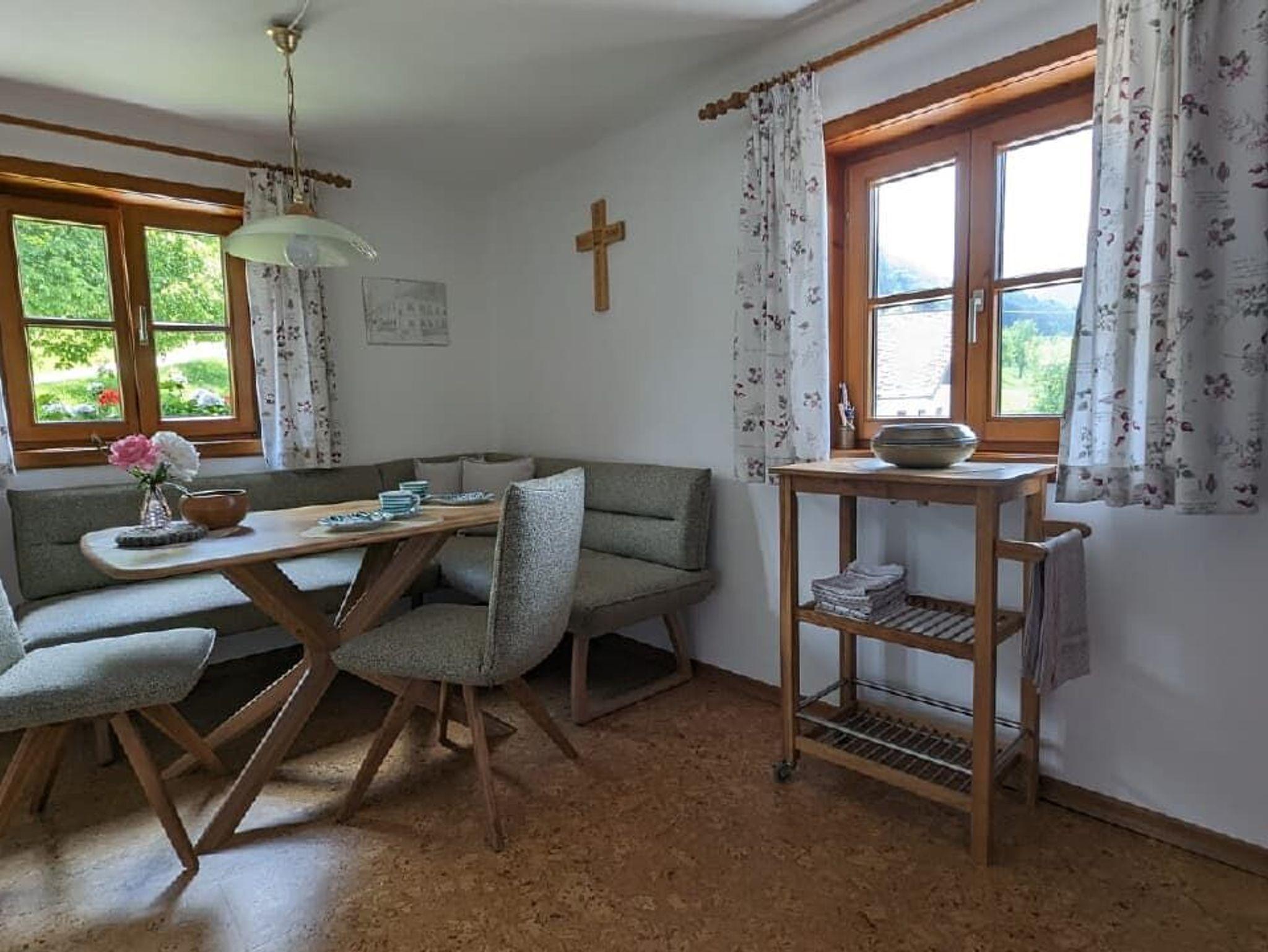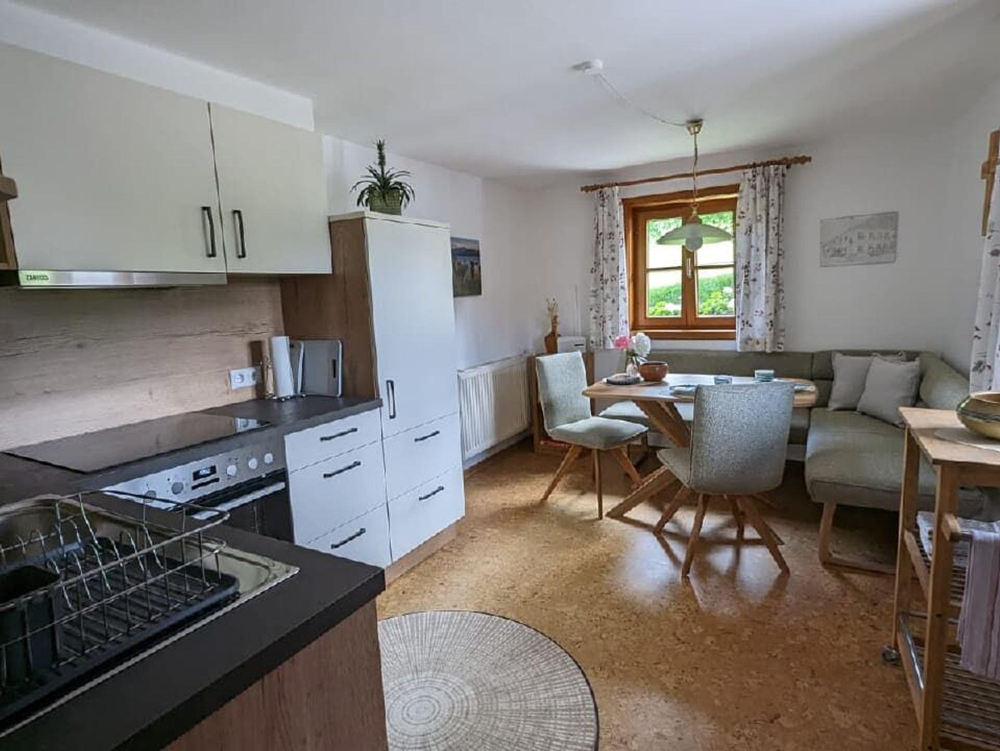 Die liebevoll eingerichtete Ferienwohnung für bis zu vier Personen liegt im ersten Stock, verfügt über eine neue, gut ausgestattete Wohnküche mit gemütlicher Essecke. Es gibt zwei Schlafzimmer, eines mit Doppelbett und eines mit getrennten Betten, Dusche und WC sind separat. Ideal für Familien. Der Bauernhof liegt am Dr. Gleissnerweg, einem sehr beliebten Wanderweg, der auch Teil des Josefweg ist. Der eigene Badeplatz mit Liegewiese ist zu Fuß erreichbar.