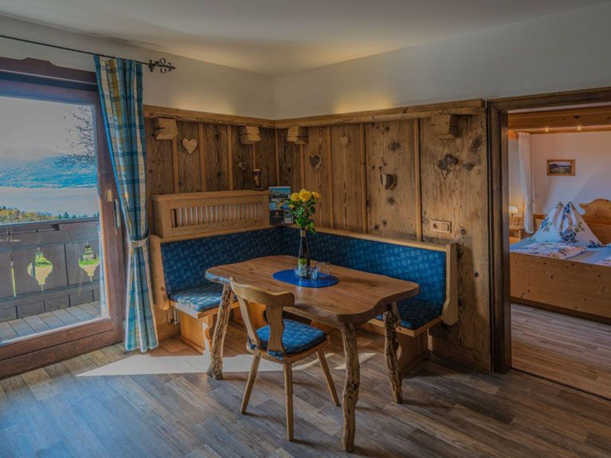 Ebenso befindet sich in der Ferienwohnung eine Sitzeckbank, um gemütlich miteinander zu speisen. Beim Frühstück die Morgensonne genießen und das Farbenspiel der traumhaften Gegend mit Blick auf das Gebirge erleben!
