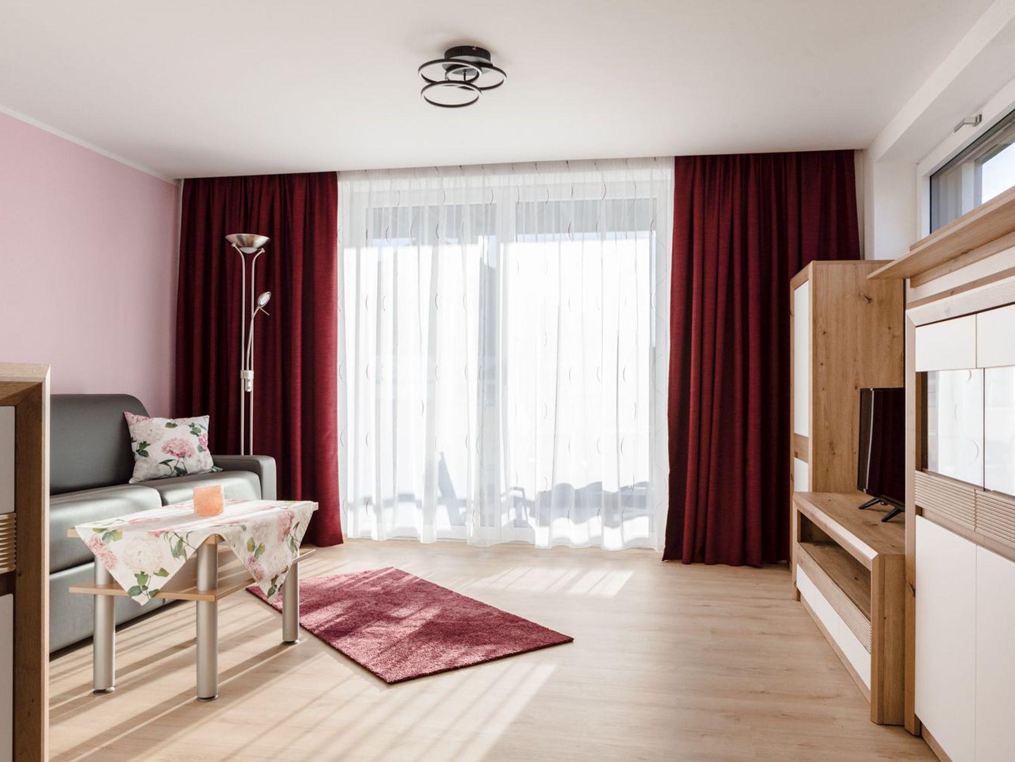 Die Ferienwohnung Abendsonne präsentiert sich hell, großzügig und liebevoll ausgestattet – ideal für alle, die Komfort und entspannte Urlaubstage am Attersee suchen. Der Wohnbereich überzeugt mit großen Fensterfronten, warmen Farben und direktem Zugang zum Balkon, auf dem man die letzten Sonnenstrahlen des Tages genießen kann.