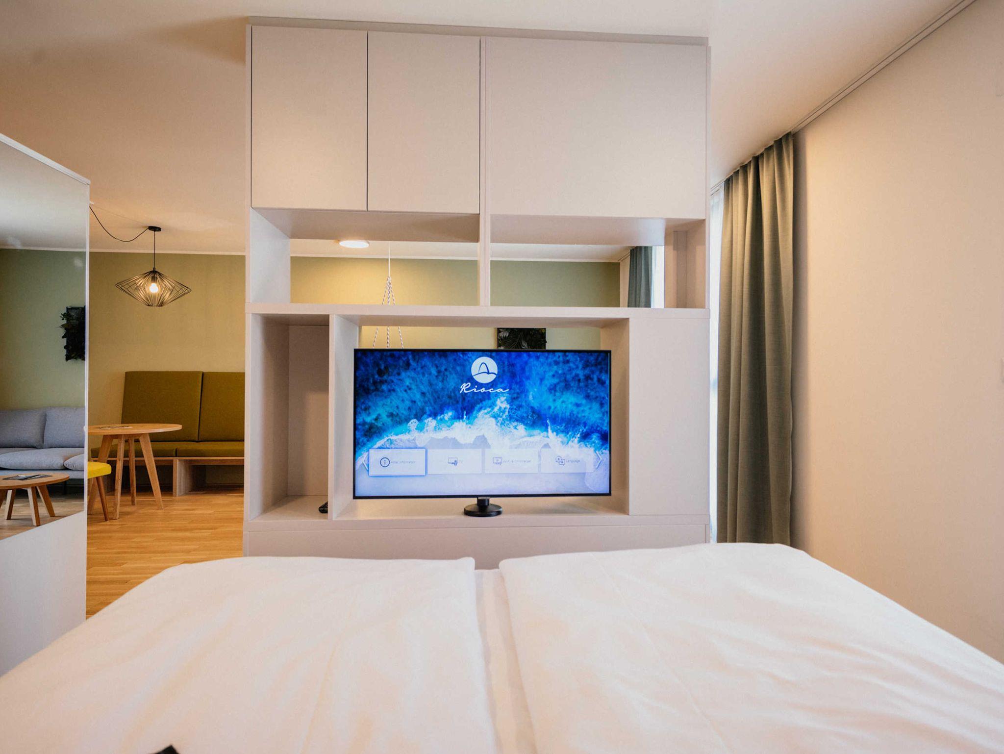 Mach es Dir gemütlich und entdecke Deinen neuen Lieblingsplatz in Deinem eigenen Zuhause auf Zeit. Das ca. 48 m² große Apartment vereint mit einem großzügigen Balkon und einer Apartmentküche all das, was man sich für einen komfortablen und längeren Aufenthalt wünscht. Genieße die entspannende Regendusche und zaubere Dir nach Herzenslust Dein Lieblingsgericht in Deiner eigenen Küche. Danach fällst Du in das große 1,80 m breite Bett oder Deine gemütliche Schlaf-Couch und schaust einen Film auf einem 4K-Smart-TV. Dein Apartment verfügt außerdem über hochwertiges Echtholzparkett und ein modernes Bad mit teils separater Toilette.