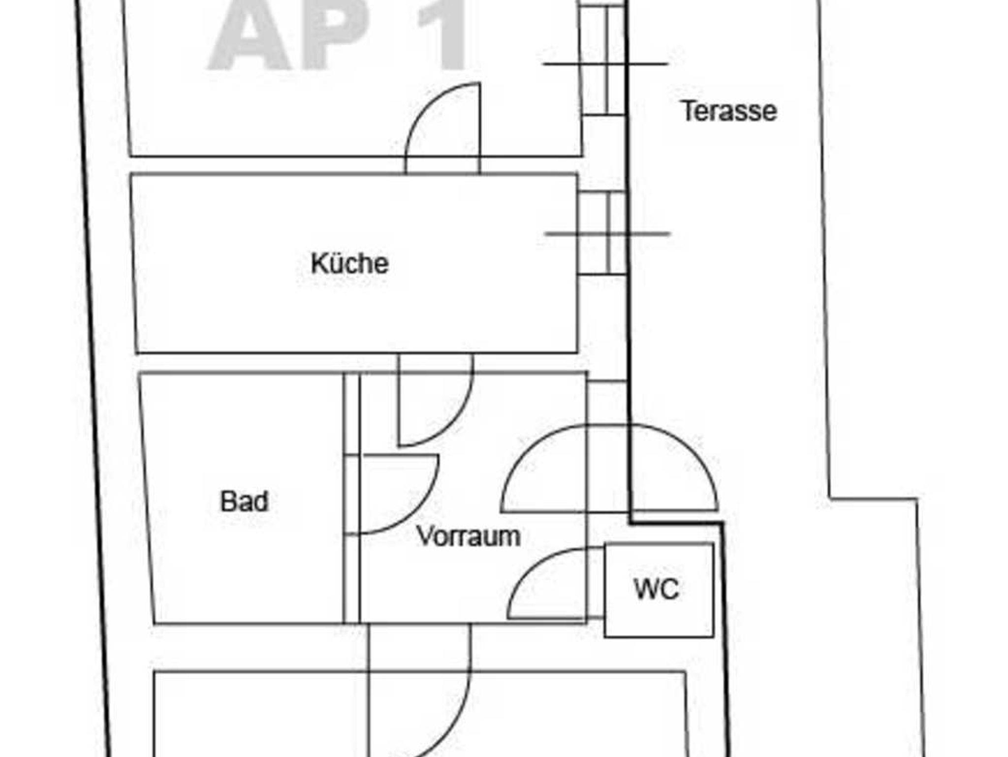 Sie verfügt über Vorzimmer, Schlafzimmer mit einem Doppelbett, Wohnzimmer mit Schlafcouch, Küche mit Essplatz, Bad und separates WC.