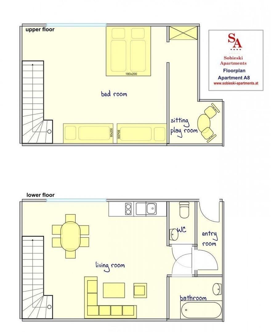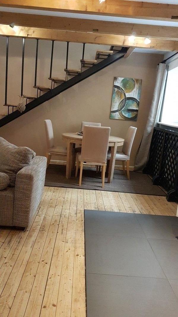 Genießen Sie Ihren Aufenthalt auf 2 Ebenen. Im oberen Bereich ein großzügiges Schlafzimmer (Doppelbett + Einzelbett), sowie ein kleiner "verborgener Spielraum" für Kinder. Im in der unteren Ebene ein schönes Wohnzimmer mit Sofa-Bereich, dem Esstisch, einer Küchenzeile. Ebenso im unteren Bereich das Badzimmer mit Badewanne, separatem WC und einem vorgelagerten Eingangsbereich mit Garderobe.