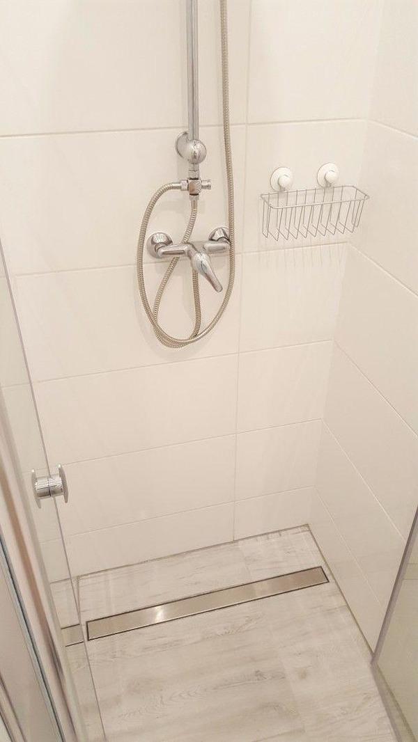 - Badezimmer mit Duschniesche und Waschmaschine