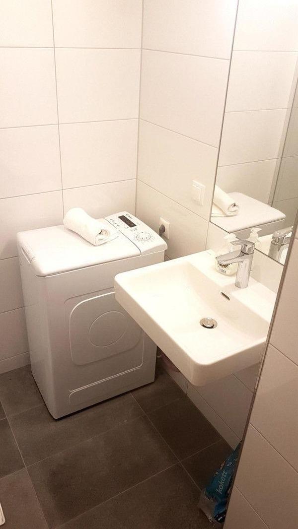 Neben 2 gemütlichen Schlafzimmern bietet das Apartment ein Wohnzimmer mit Küchenzeile. Die Küche ist voll ausgestattet inkl. Kaffeemaschine, Geschirrspüler, Mikrowelle und Kühlschrank. Sogar eine Waschmaschine steht im Apartment für Sie bereit.