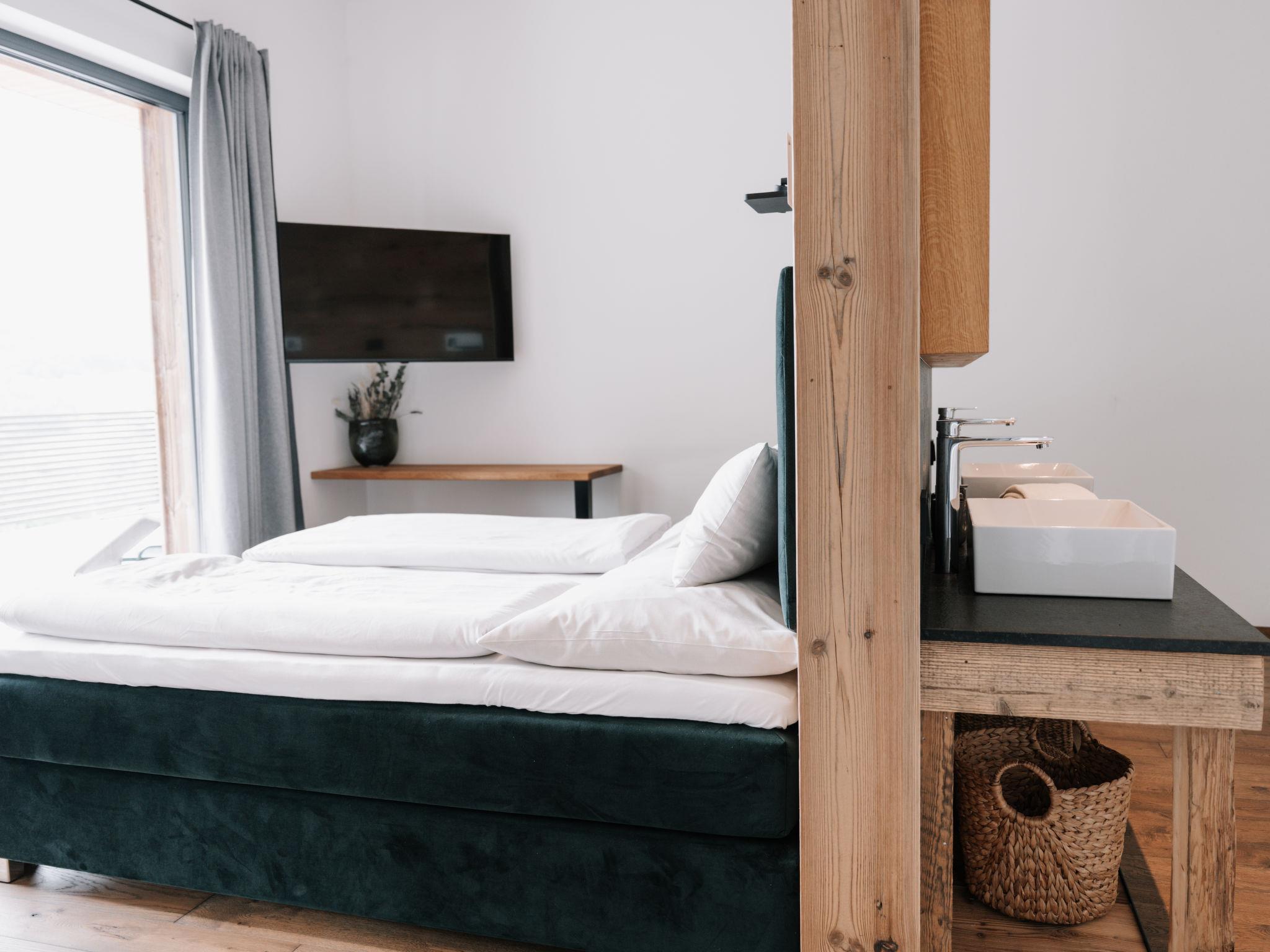 "Haus am Kogl", 6-room cottage 300 m2 on 2 levels. Object suitable for 10 adults + 3 children. Bright, partly with sloping ceilings, comfortable and wooden furniture furnishings: large living/dining room with dining table, satellite TV and international TV channels (flat screen), tiled stove. Exit to the balcony. 1 room with panoramic window with 1 double sofabed (1 x 140 cm, length 200 cm), 1 double bed, shower/WC, satellite TV and international TV channels (flat screen). Gallery with 1 sofabed (90 cm, length 200 cm), 1 double bed, satellite TV and international TV channels (flat screen). Open kitchen (oven, dishwasher, 4 induction hot plates, toaster, kettle, grill, electric coffee machine, raclette grill) with bar. Sep. WC. Underfloor heating. On the lower ground floor: 3 double bedrooms, each room with shower/WC, satellite TV and international TV channels (flat screen). Exit to the terrace. Parquet floors. Terrace. Terrace furniture, barbecue, deck chairs. Very beautiful panoramic view of the countryside. Facilities: washing machine, dryer, iron, children's high chair, baby cot for up to 2 year olds, hair dryer, logs (free). Internet (WiFi, free). E-charging station. Please note: non-smoking house. Smoke alarm, fire extinguisher. The pool mentioned in the description is for private use.