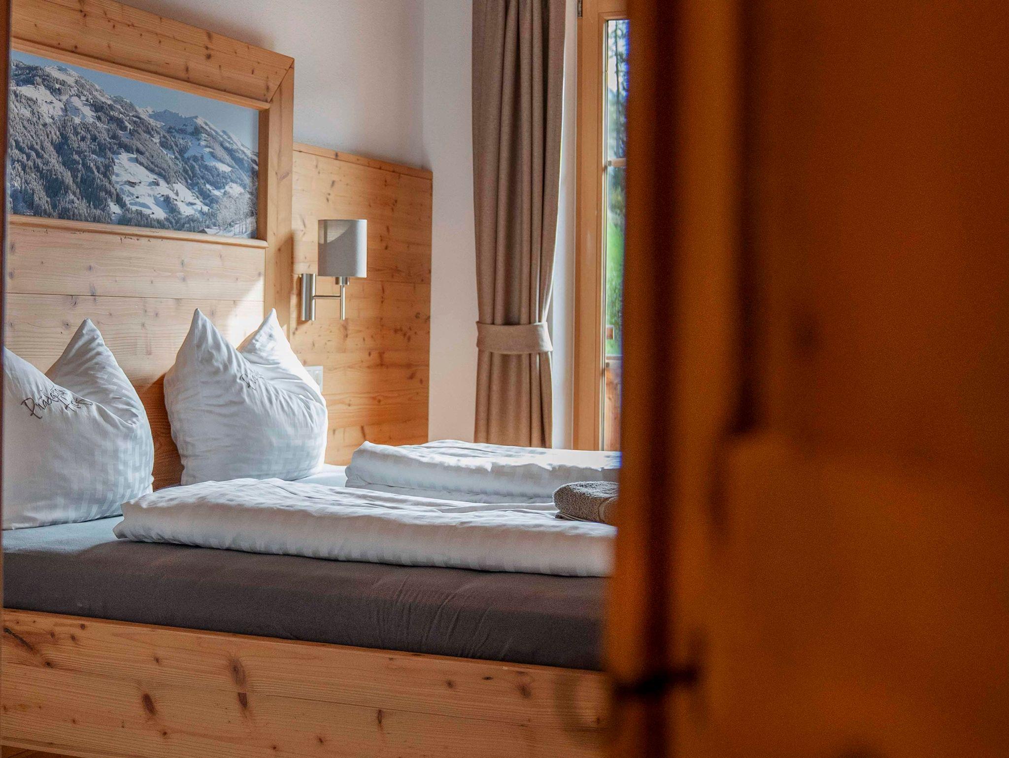 Unser Appartement Panoramablick ist ideal für Familien mit 3 Kindern, da drei separate Schlafzimmer vorhanden sind (3 Doppelzimmer), jeweils mit Sat-TV ausgestattet.