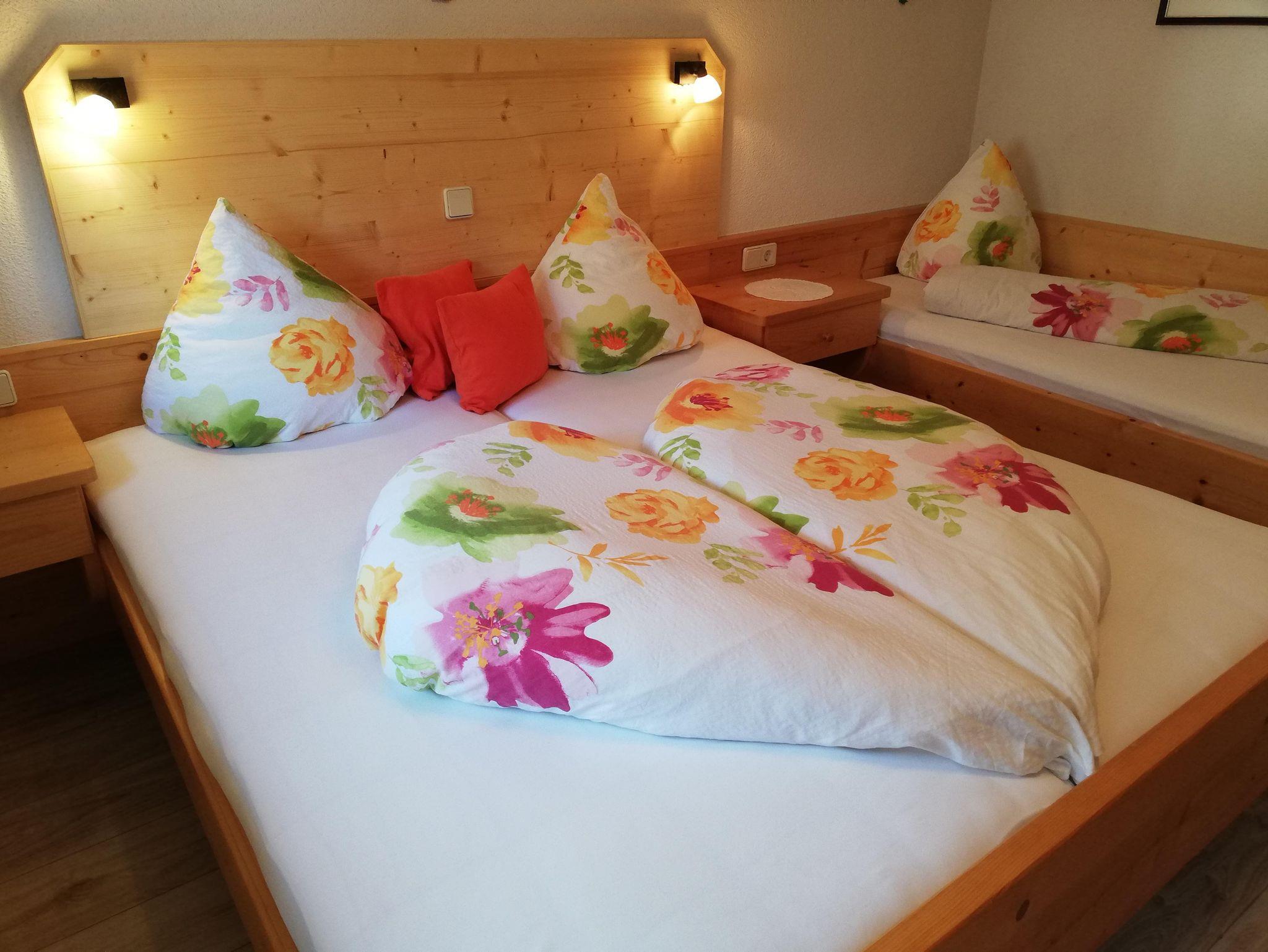 50 m², komplett eingerichtete Wohnküche mit Kochecke , gemütlicher Erker mit Essbereich, Einbauliege, SAT- Flach-TV und Radio/CD-Spieler, Schlafzimmer ( 3 Betten) ( Vollholzmöbel, allergikergeeignete Bettwäsche, Baby- Reisebett gratis auf Anfrage, Dusche/WC mit Haarfön, Hand- u. Duschtücher, Kosmetikspiegel, Vorraum , Garderobe, möblierter u. überdachter Balkon.