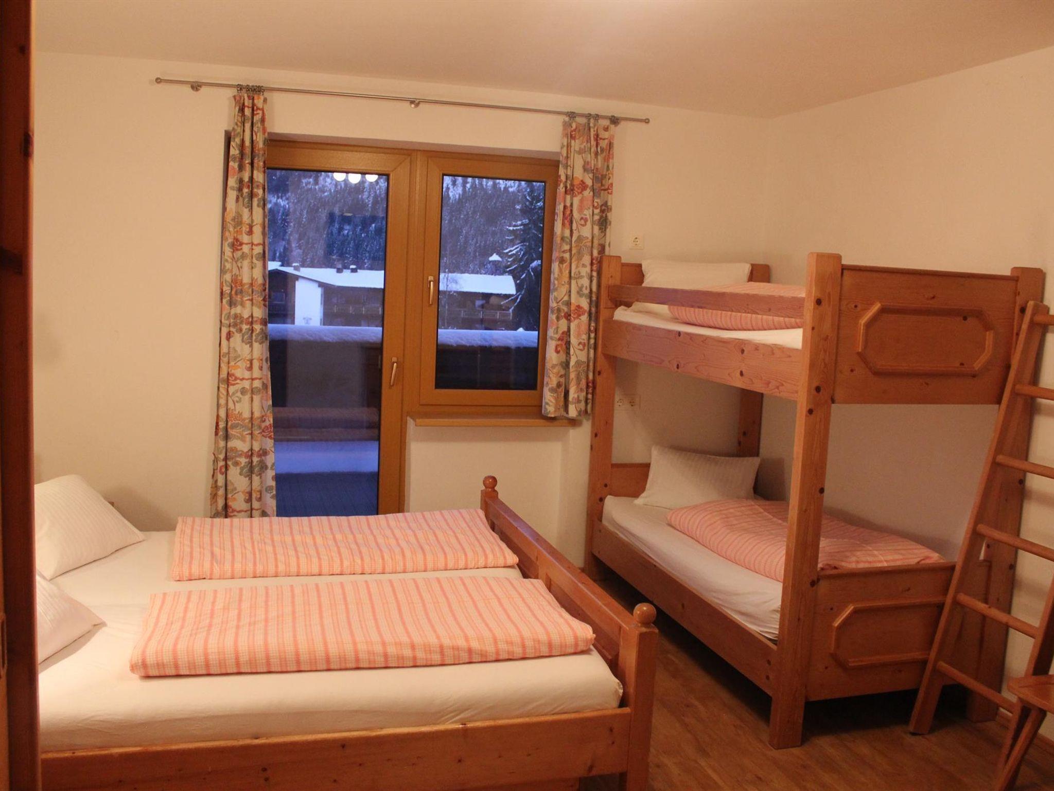 Unser Vierbettzimmer haben ein Doppelbett und ein Etagenbett. Weiters gibt es einen kleinen Tisch und einen Kleiderschrank.