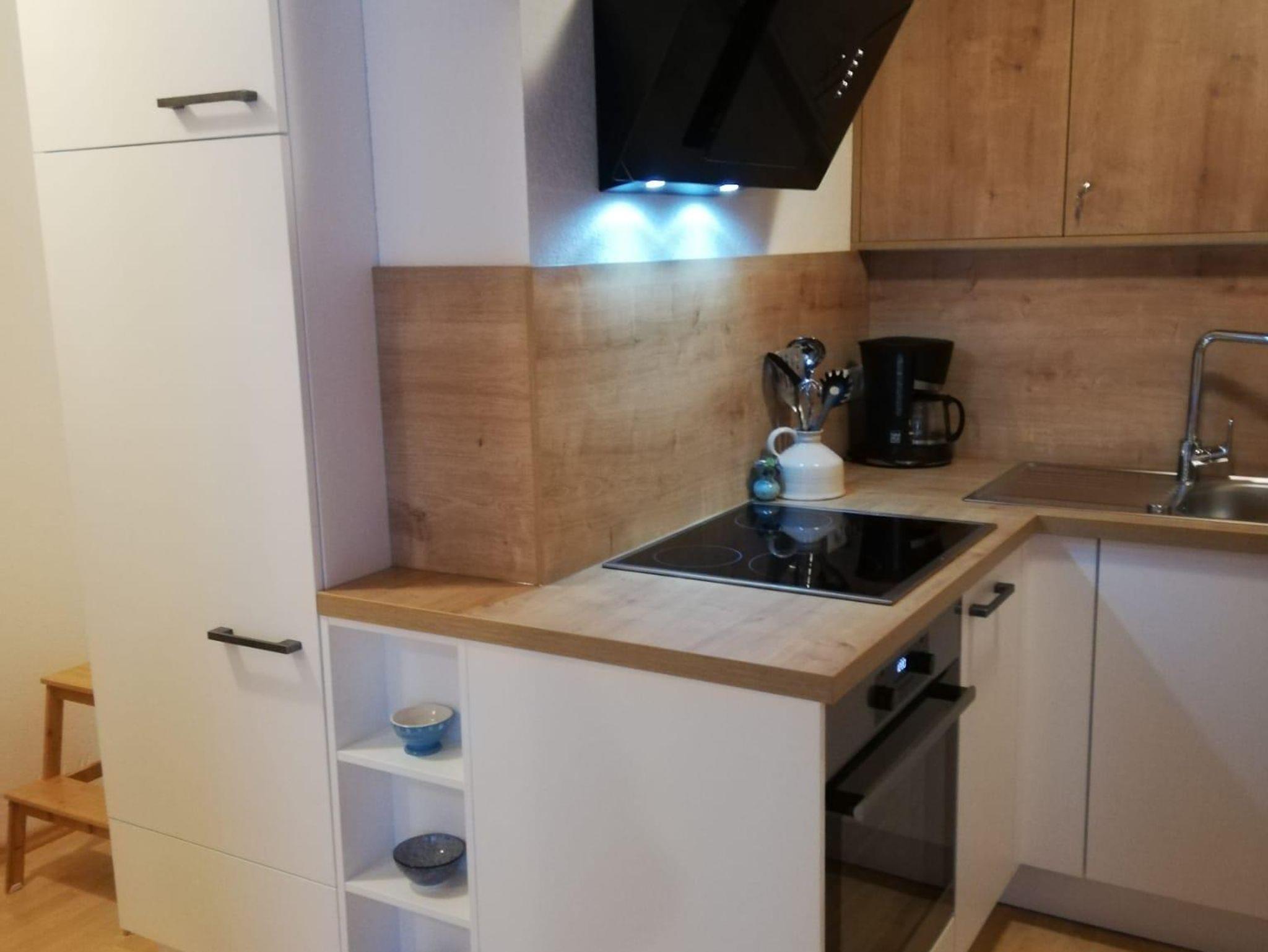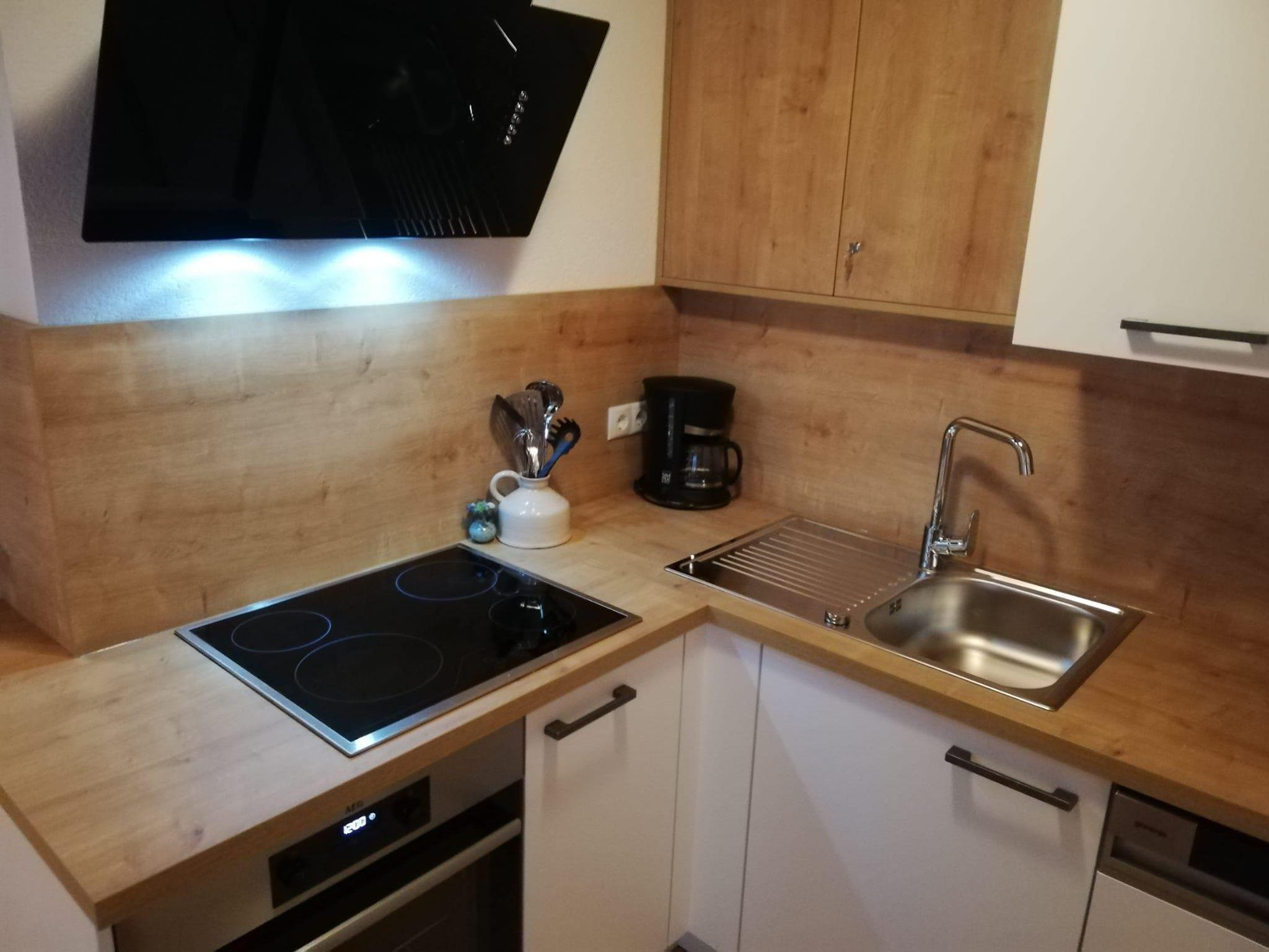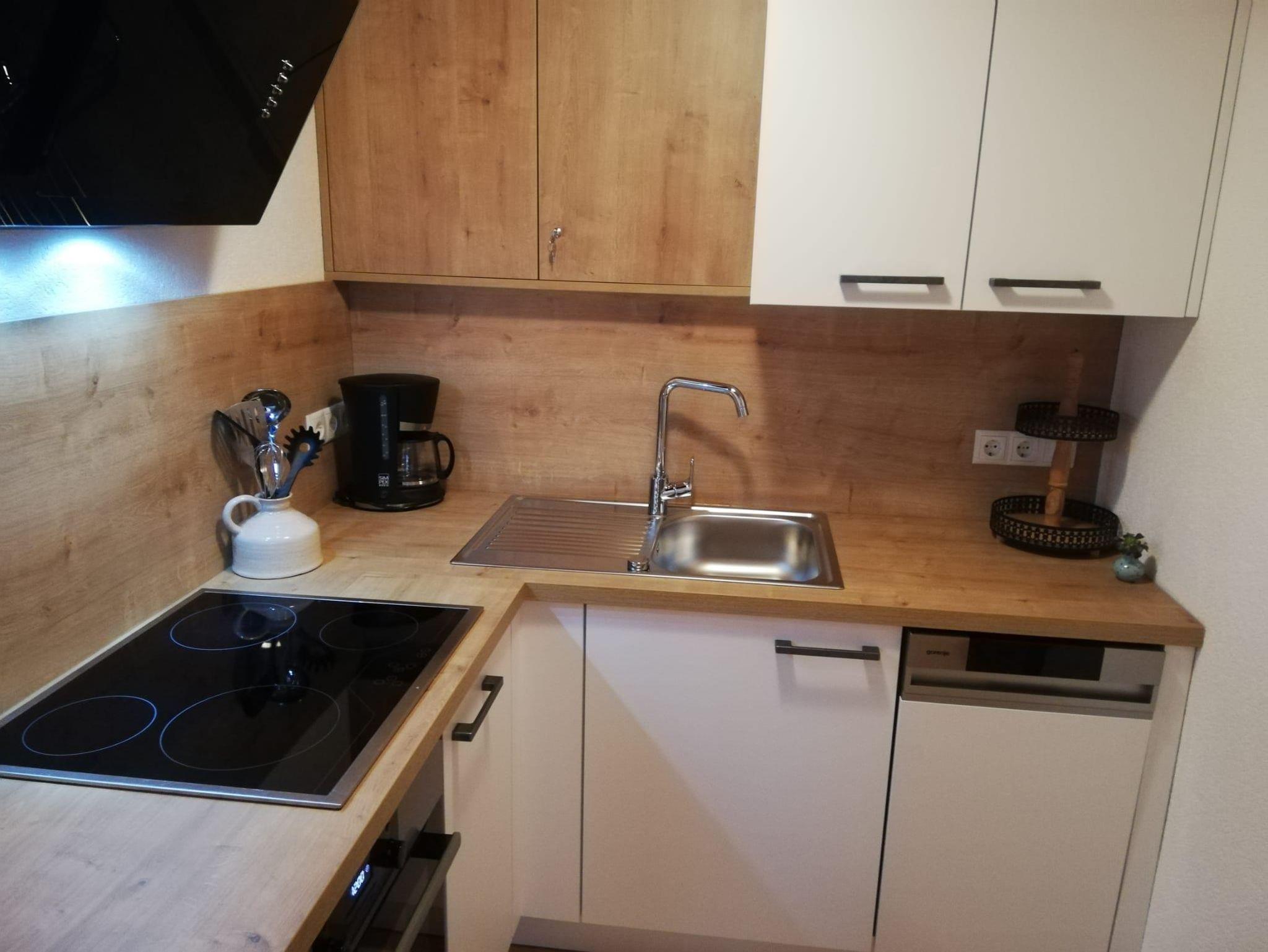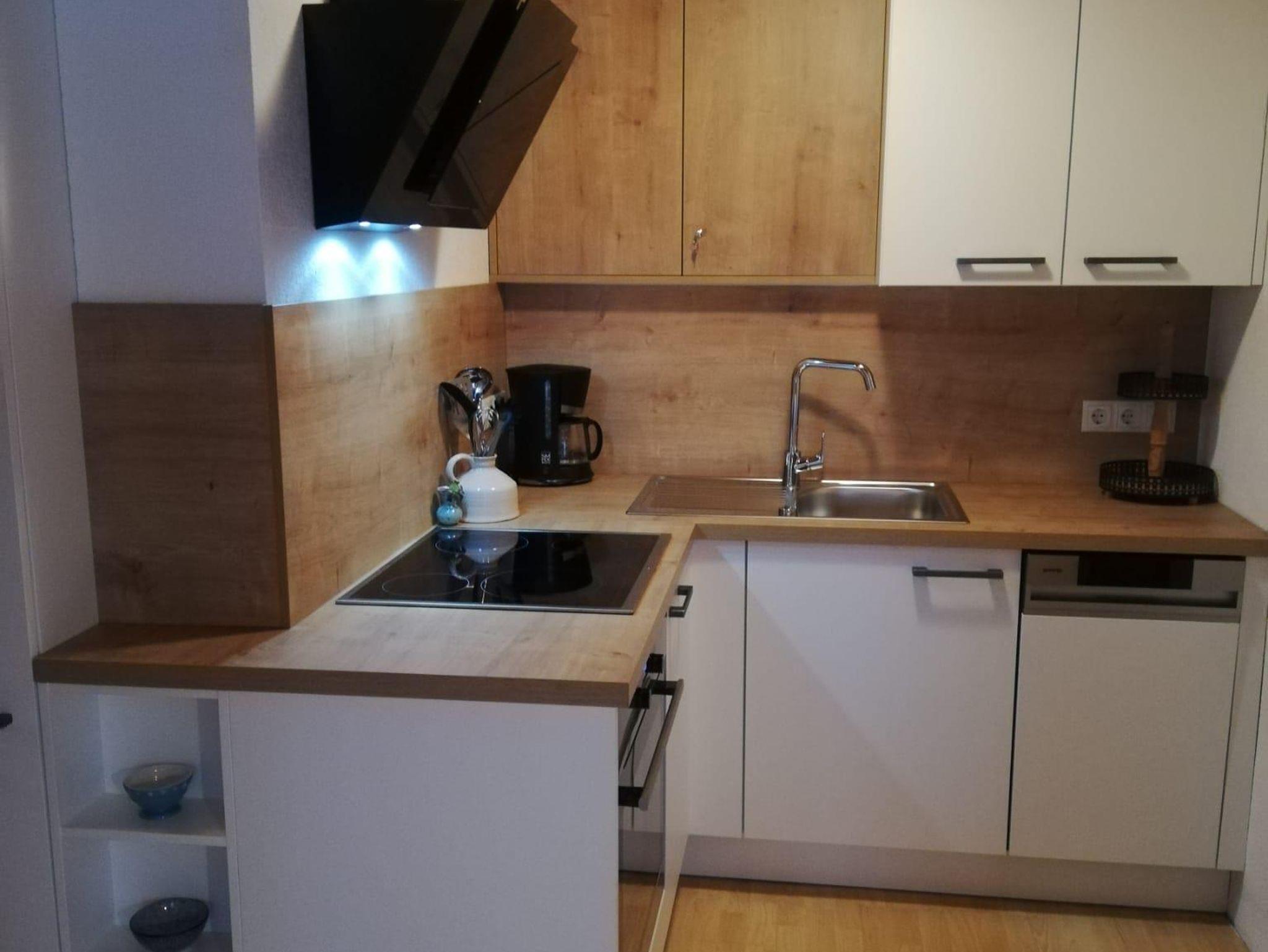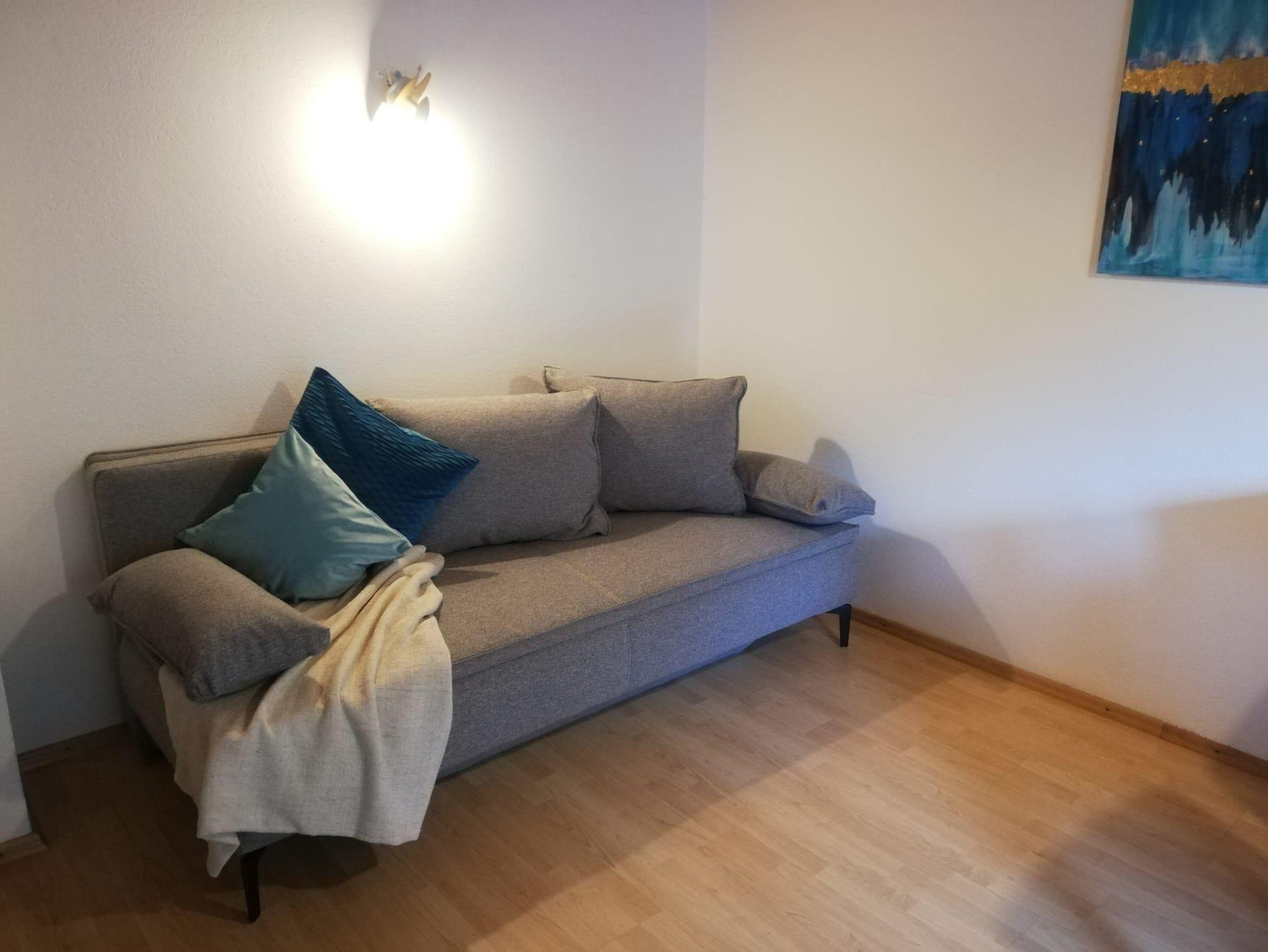 Teilrenovierte Wohnung im EG eines Mehrfamilienhauses Haus Jenewein. Die Wohnung hat eine Fläche von 55m² mit einer großzügigen Terrasse. Das Appartement besteht aus einer Wohnküche, Schlafzimmer, Badezimmer und Garderobe. Die Wohnküche ist neu und bietet ausreichend Platz (Backrohr, Ceranfeld, Geschirrspüler, Dunstabzug, Kaffeemaschine, Kühlschrank mit Gefrierfach). Das angrenzende Wohnzimmer verfügt über einen Esstisch, Sitzmöglichkeiten, TV, genügend Stauraum und mit Zugang zur Terrasse. Die im Wohnzimmer befindliche Couch bietet bei Bedarf für 2 Personen eine Schlafmöglichkeit. Das Schlafzimmer besteht aus einem Doppelbett, großem Schrank und Möglichkeit für ein Kinderbett.