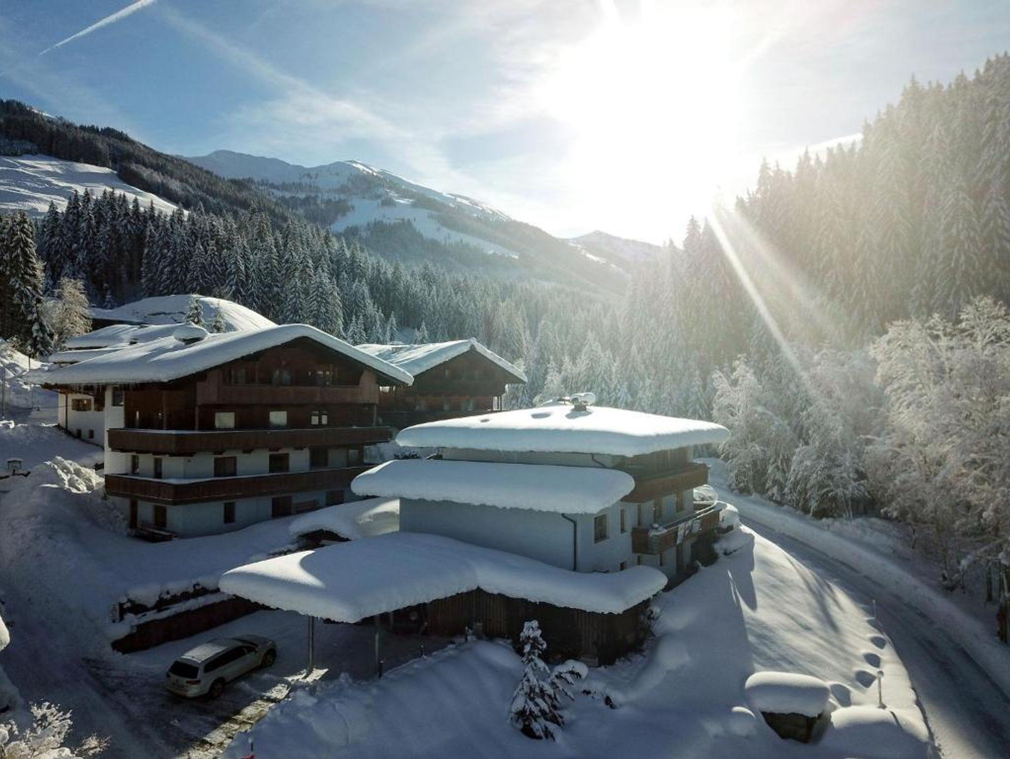 Das Haus Jenewein befindet sich ca. 2Km vom Ortszentrum entfernt und liegt in einer sehr ruhigen Lage neben einem Wildbach. Die Busstation befindet sich 50m neben dem Haus. So wird zum Schifahren auch kein Auto benötigt. Schitouren können direkt von der Unterkunft unternommen werden. Im Sommer idealer Ausgangspunkt für Bergwanderungen. Die Unterkunft bietet Platz für 2 Fahrzeuge, wobei ein Parkplatz überdacht ist.