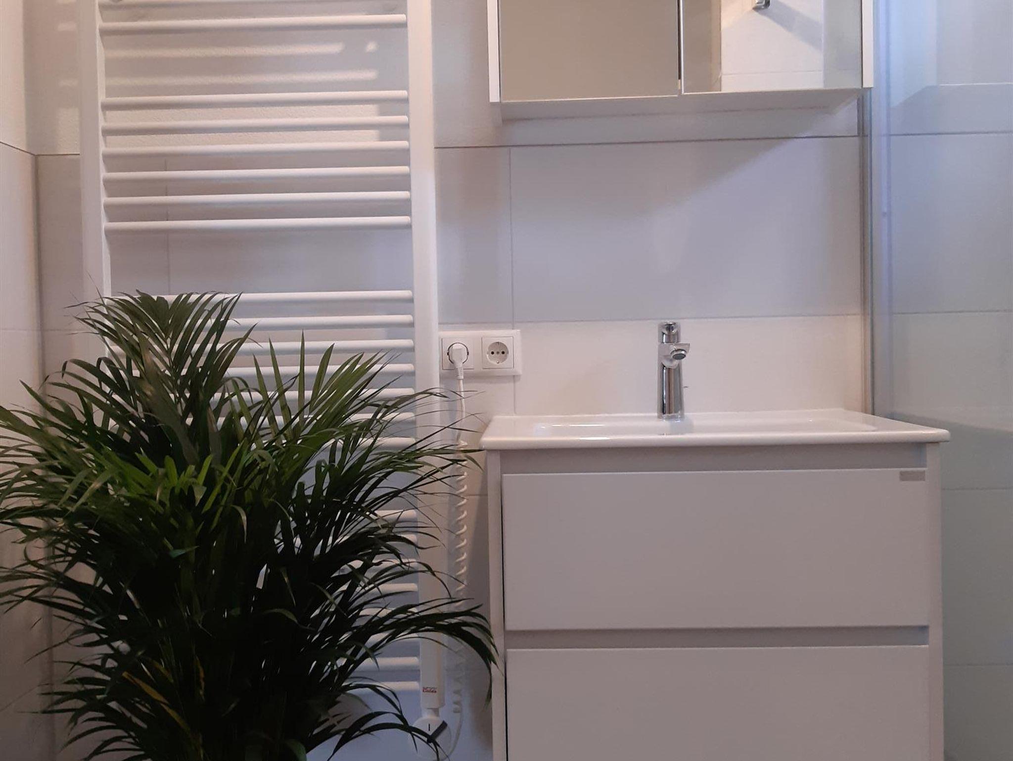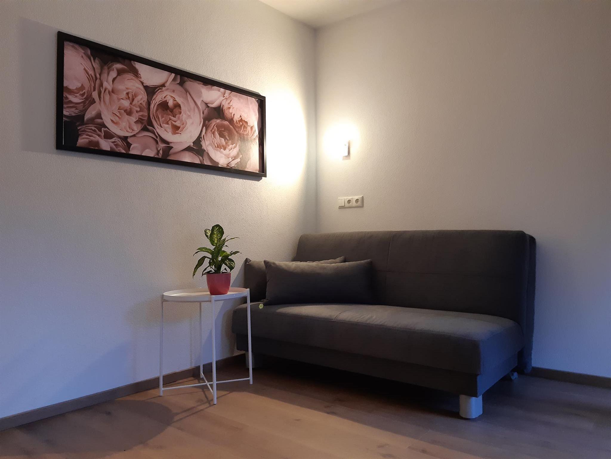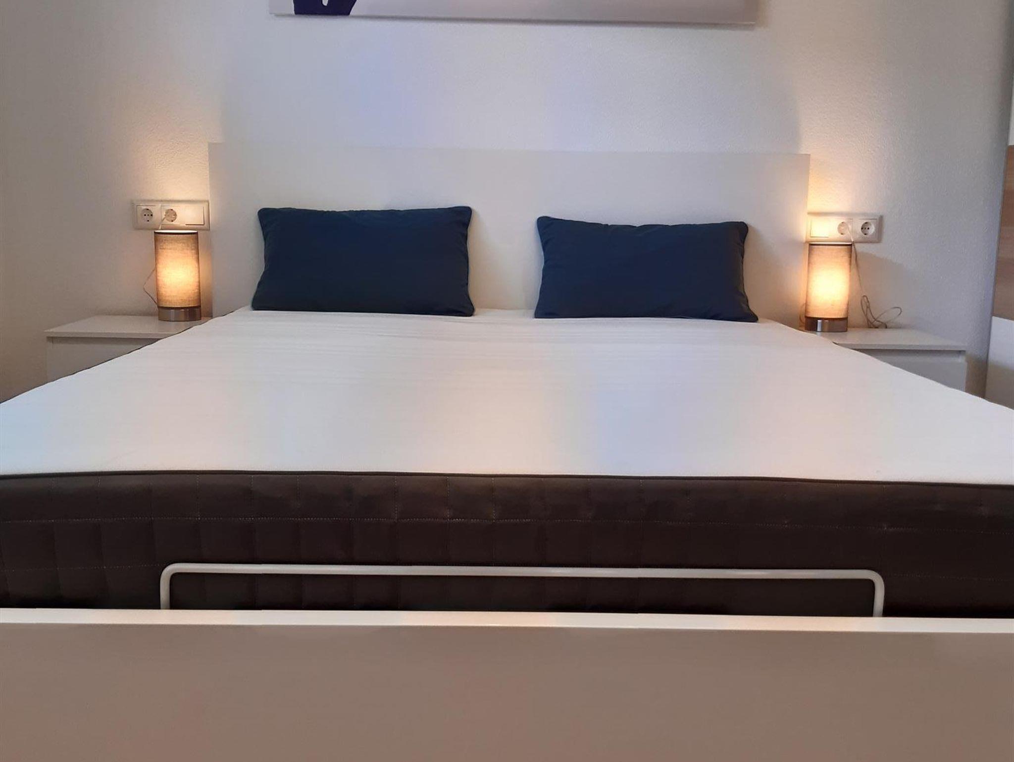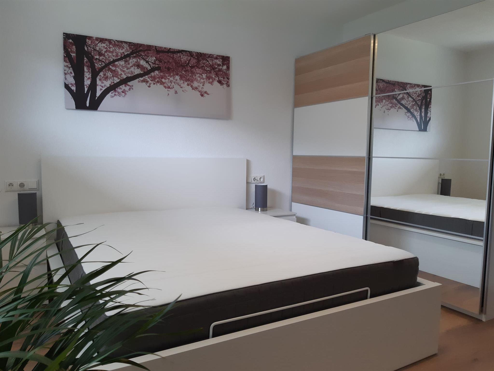 Die Wohnung (45 qm) eignet sich für 2 - 4 Personen, hat ein Schlafzimmer mit Doppelbett, einen Wohnraum mit einer Küche / einem Esstisch und einer ausziehbaren Couch. Das Bad ist mit einer Dusche und einem WC ausgestattet.