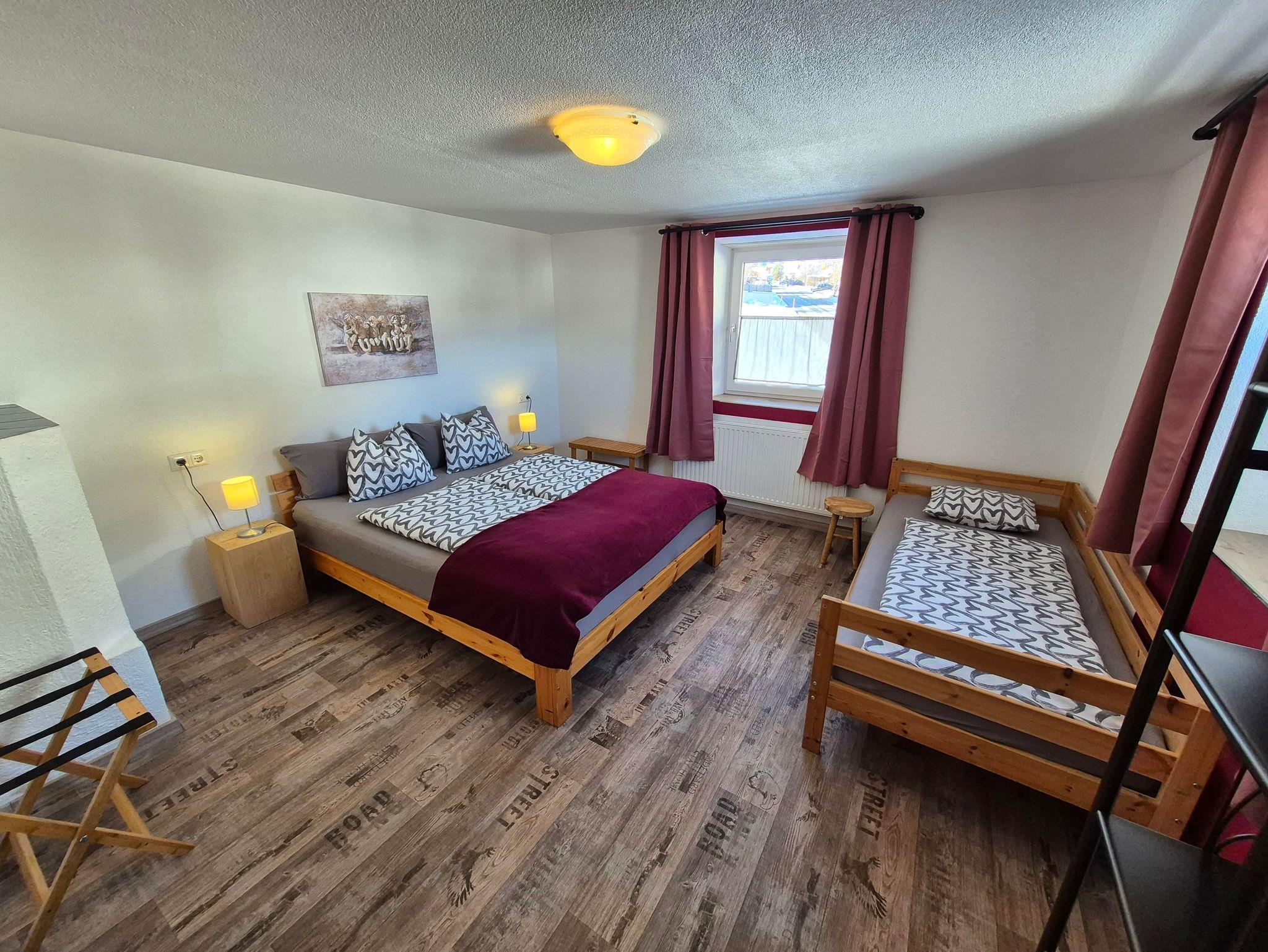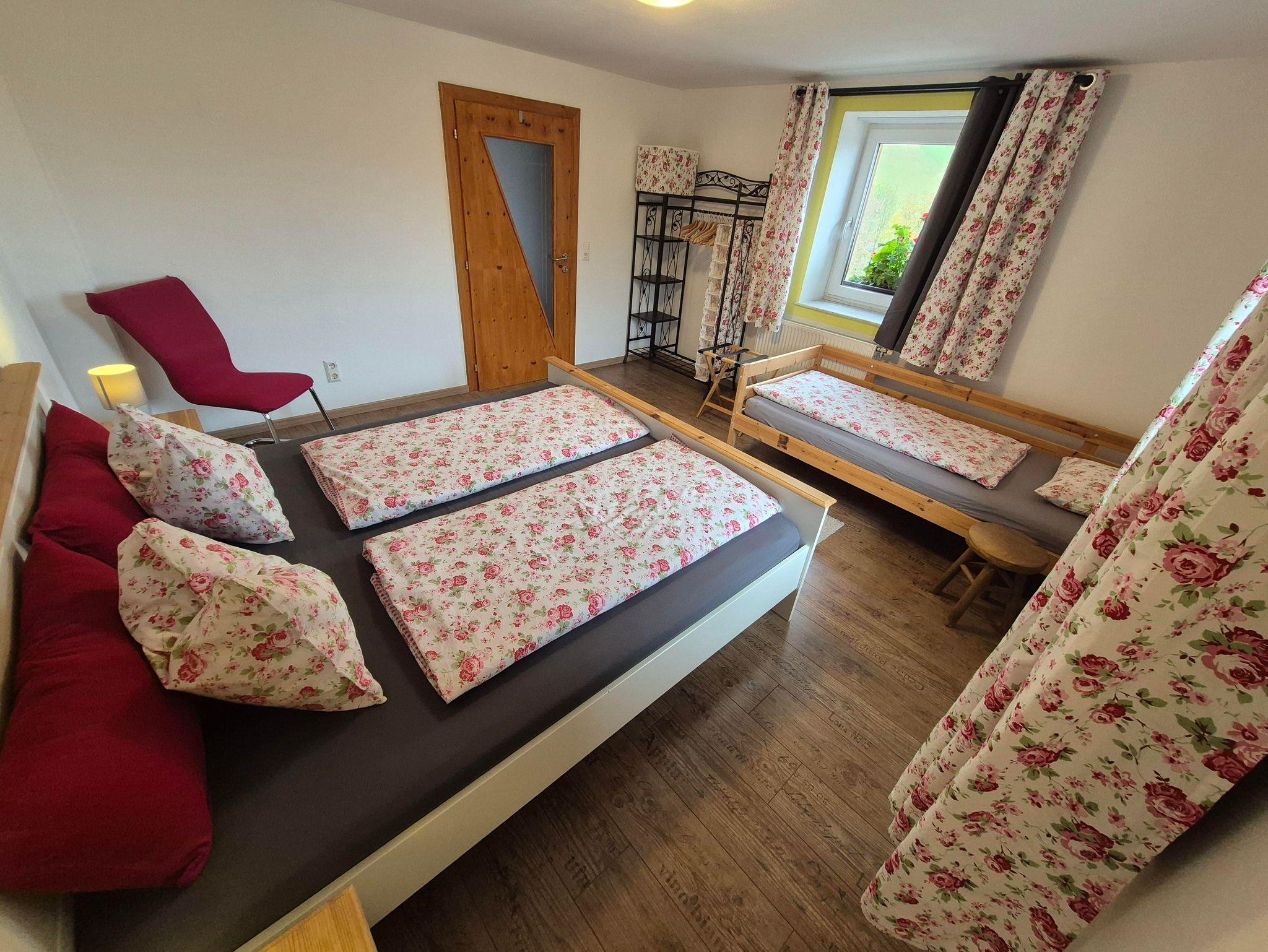 Charmante Ferienwohnung auf großzügigen 114 m², mit herrlichem Blick auf Wiesen und Berge. Küche mit allem was man braucht und großem Tisch zum gemütlichen zusammen sitzen . Sehr großes Bad mit Dusche, Badewanne, Doppelwaschbecken, Waschmaschine. Eine extra Toilette ( im Eingangsbereich). 2 Schlafzimmer mit je einem Doppelbett und einem Einzelbett. Bei Bedarf Babybett und Zusatzbett.