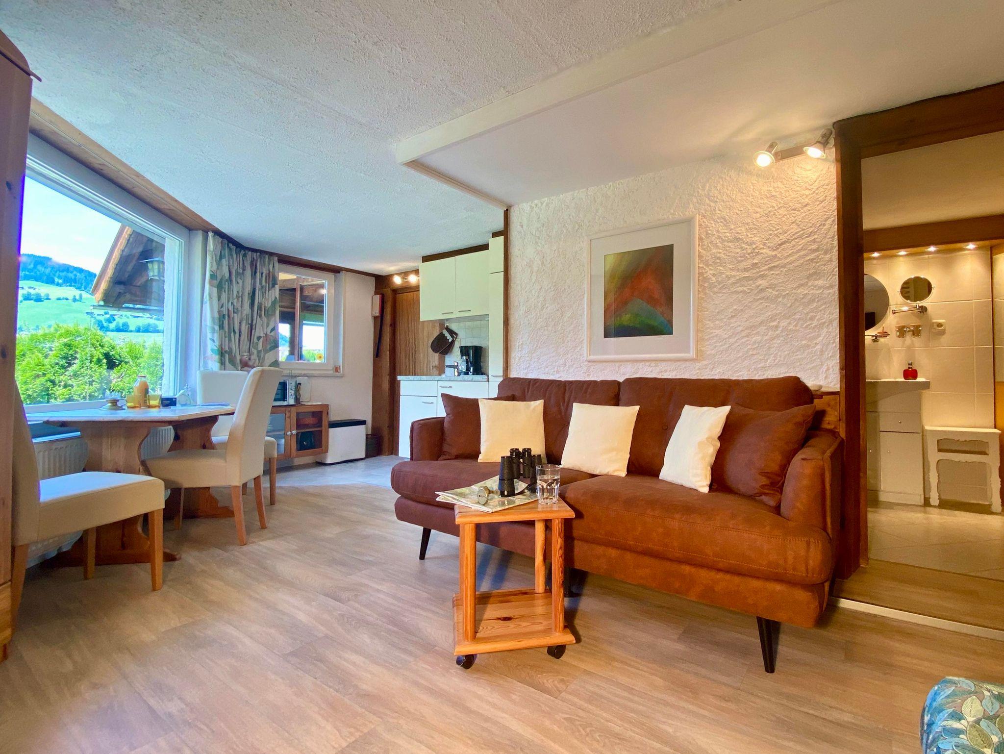 Bijou - gemütliche ca. 35qm Ferienwohnung mit herrlicher Aussicht in die Wildschönau und die Kitzbühler Alpen der Wildschönau. Ein Wohn- und Esszimmer (bequeme Couch, Esstisch, Sat-flatTV, Safe, Bücher, Spiele etc.), komplett eingerichtete Küchennische (kl.Cerankochfeld, Geschirrspüler, Kühlschrank mit Gefrierfach, Mikrowelle, Kaffeemaschine, Wasserkocher, Toaster, Eierkocher etc.), ein Schlafzimmer mit Queensize-Doppelbett, Badezimmer mit geräumiger Dusche, Waschbecken und WC (Vergrößerungsspiegel, Haarfön), inkl. Bettwäsche, Dusch/Handtücher, Geschirrtücher. Eigener Eingang sowie teilweise überdachte, große private Terrasse in den Garten und zum Pool.