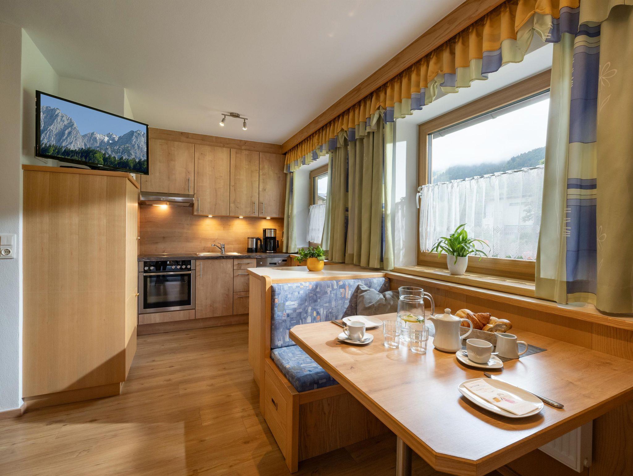 App. Lanerköpfel ist mit einem Schlafzimmer, Du/WC, und einem Wohn-Schlafraum inkl. Kleinküche (mit Mikrowelle, Herd und Backrohr, Geschirrspüler) und Sat-TV voll ausgestattet. Ein neu errichtetes Stockbett lässt hier Kinderherzen höher schlagen. Geniessen Sie die Aussicht zum Lahnerköpfl vom Balkon aus.