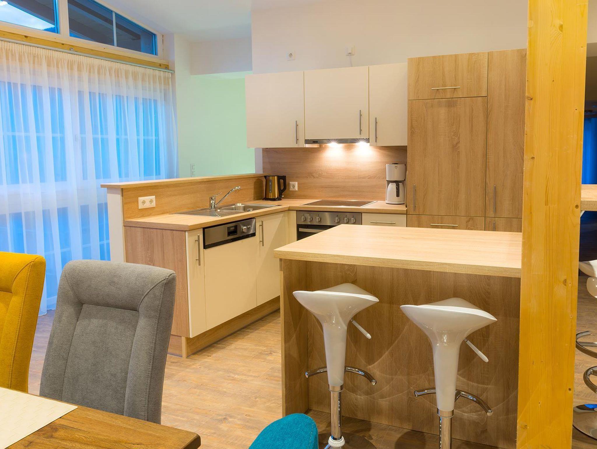 Unsere Apartments sind mit hochwertigen Materialien und viel Komfort ausgestattet. Als besonderes Wohlfühl-Extra verfügt jedes Apartment über eine eigene Infrarot-Wellnesskabine.