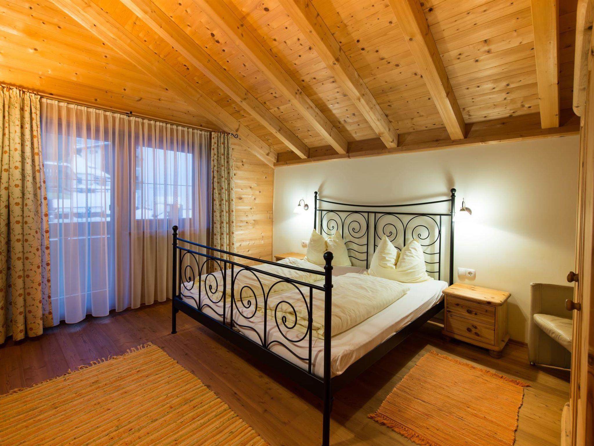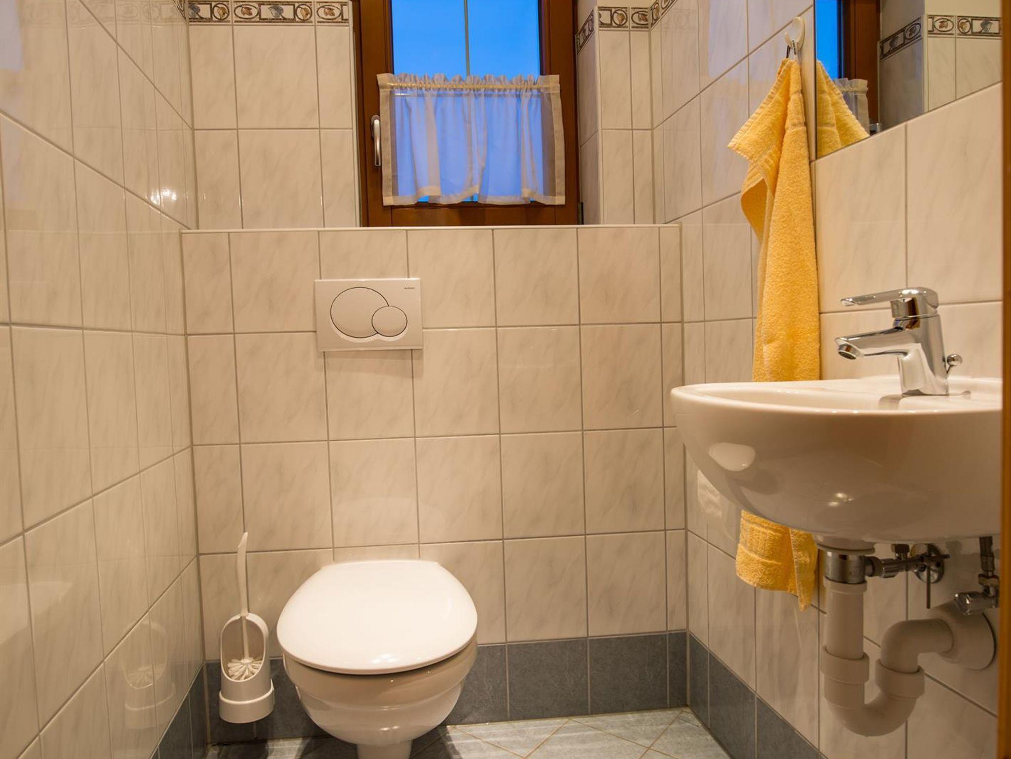 Über eine schöne Holztreppe erreichen Sie die drei Schlafzimmer, 2 x mit Doppelbett und Balkon und 1 x mit 2 getrennten Betten und SAT-TV. Weiters finden Sie im ersten Stock ein Badezimmer mit Badewanne/Dusche und ein extra WC.