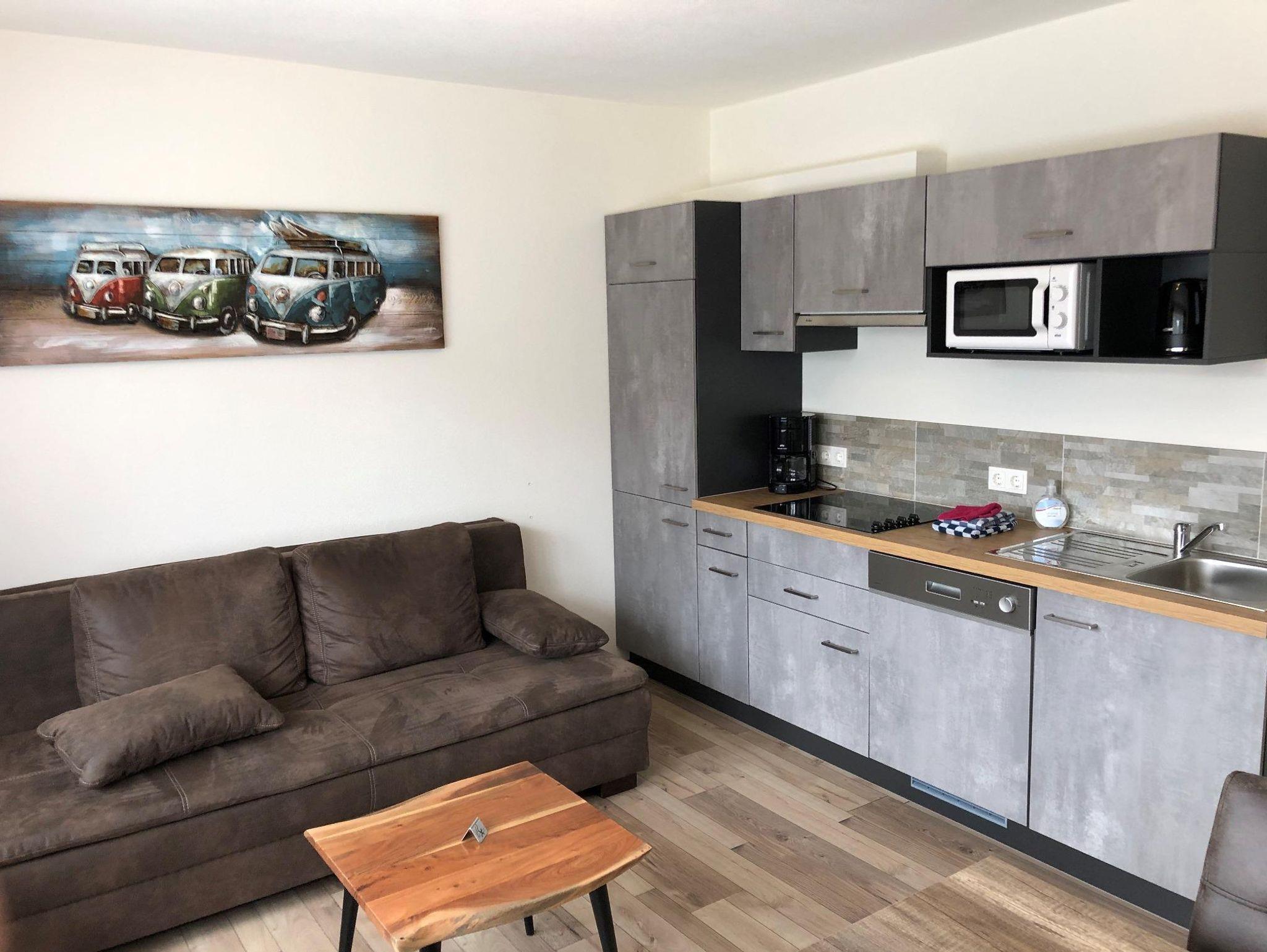Das neu renovierte Appartement für 1 bis 4 Personen ist mit Küche, Wohnzimmer mit Sofa und Esstisch, 1 Schlafzimmer und 1 Badezimmer ausgestattet. Das Badezimmer ist mit Dusche/WC.