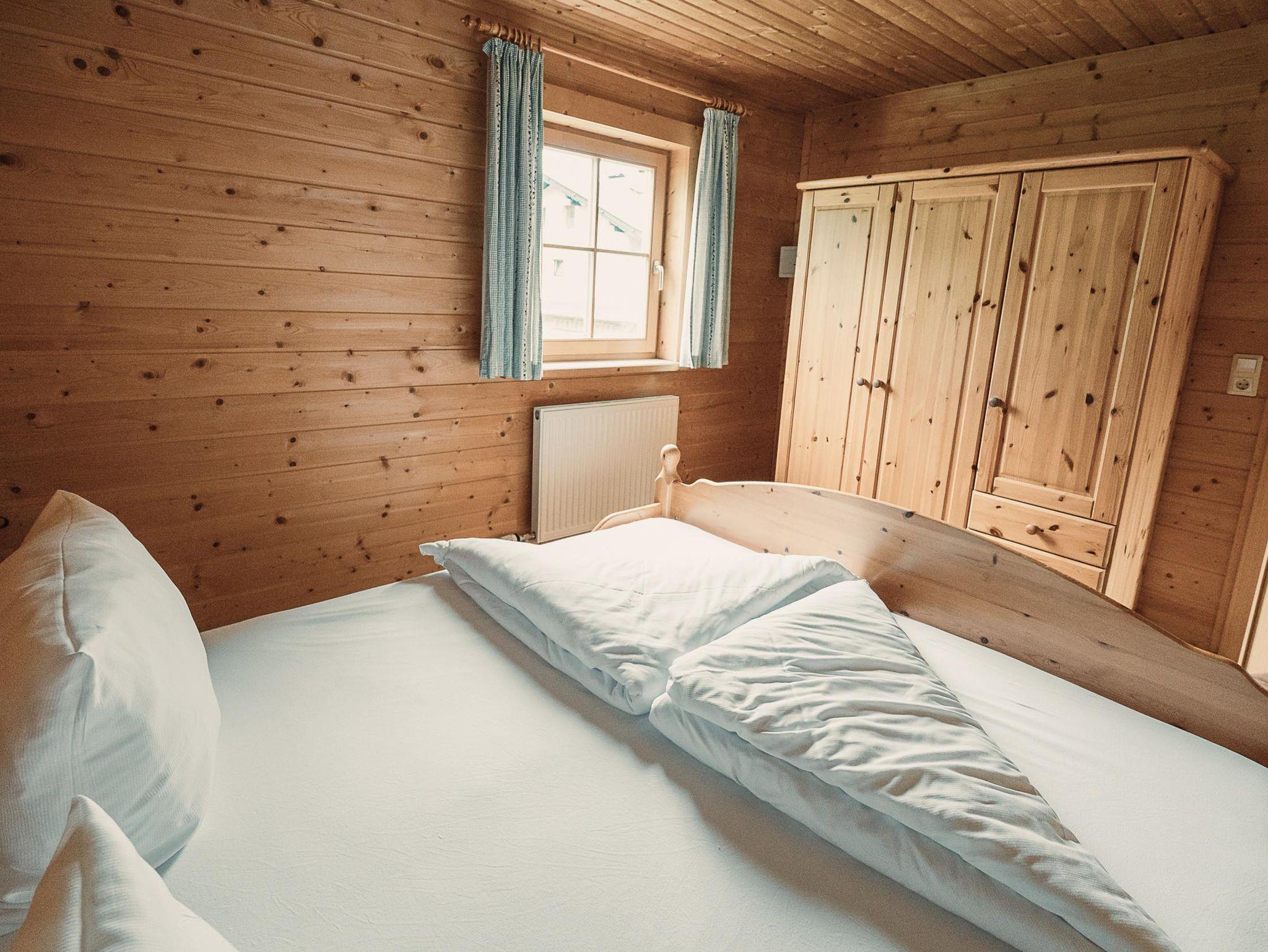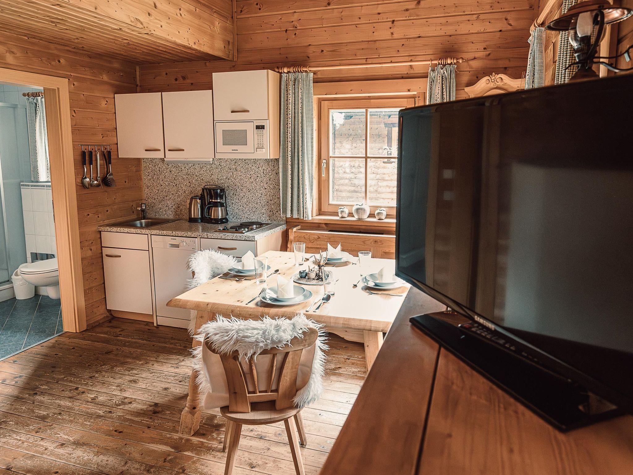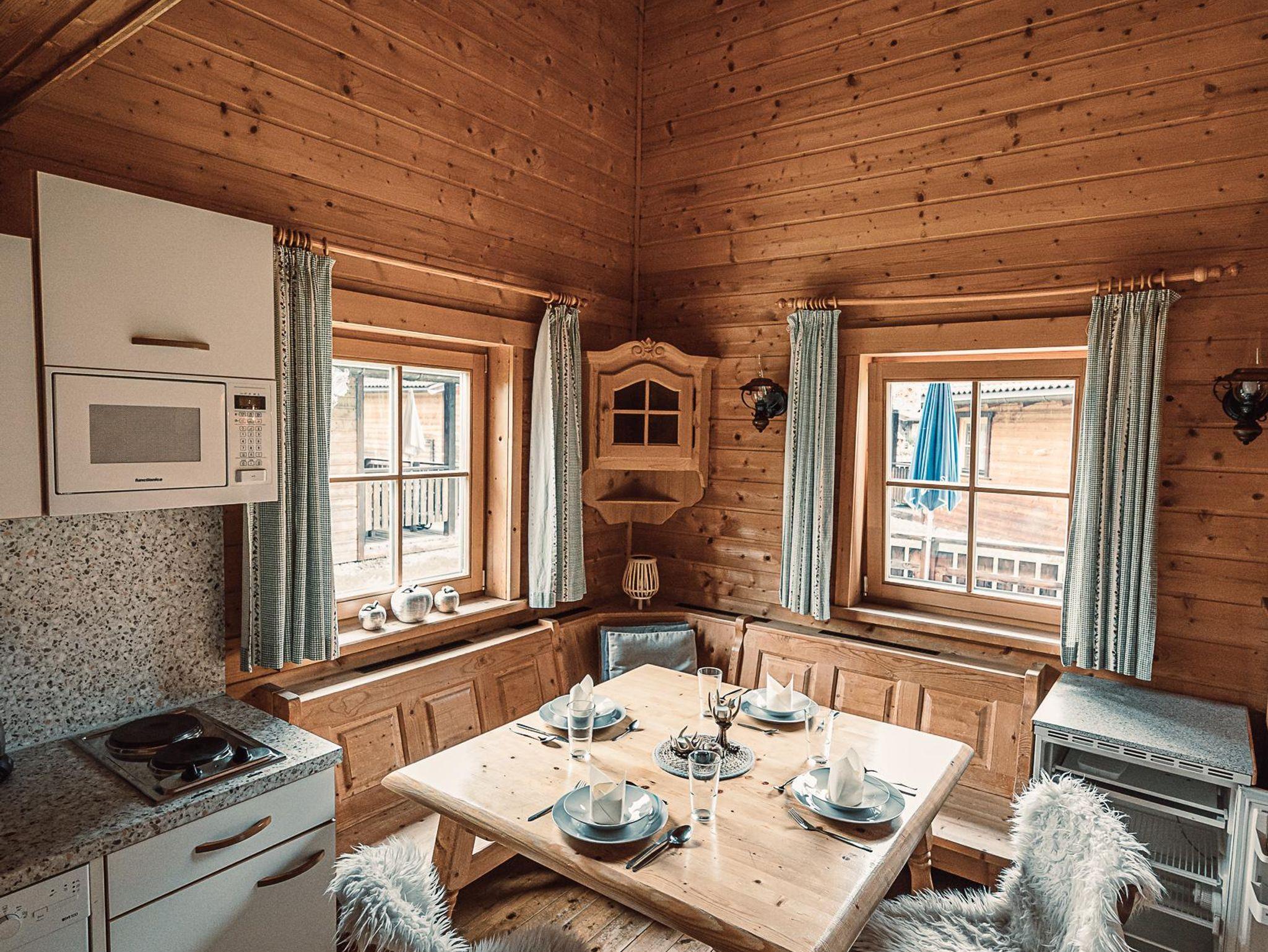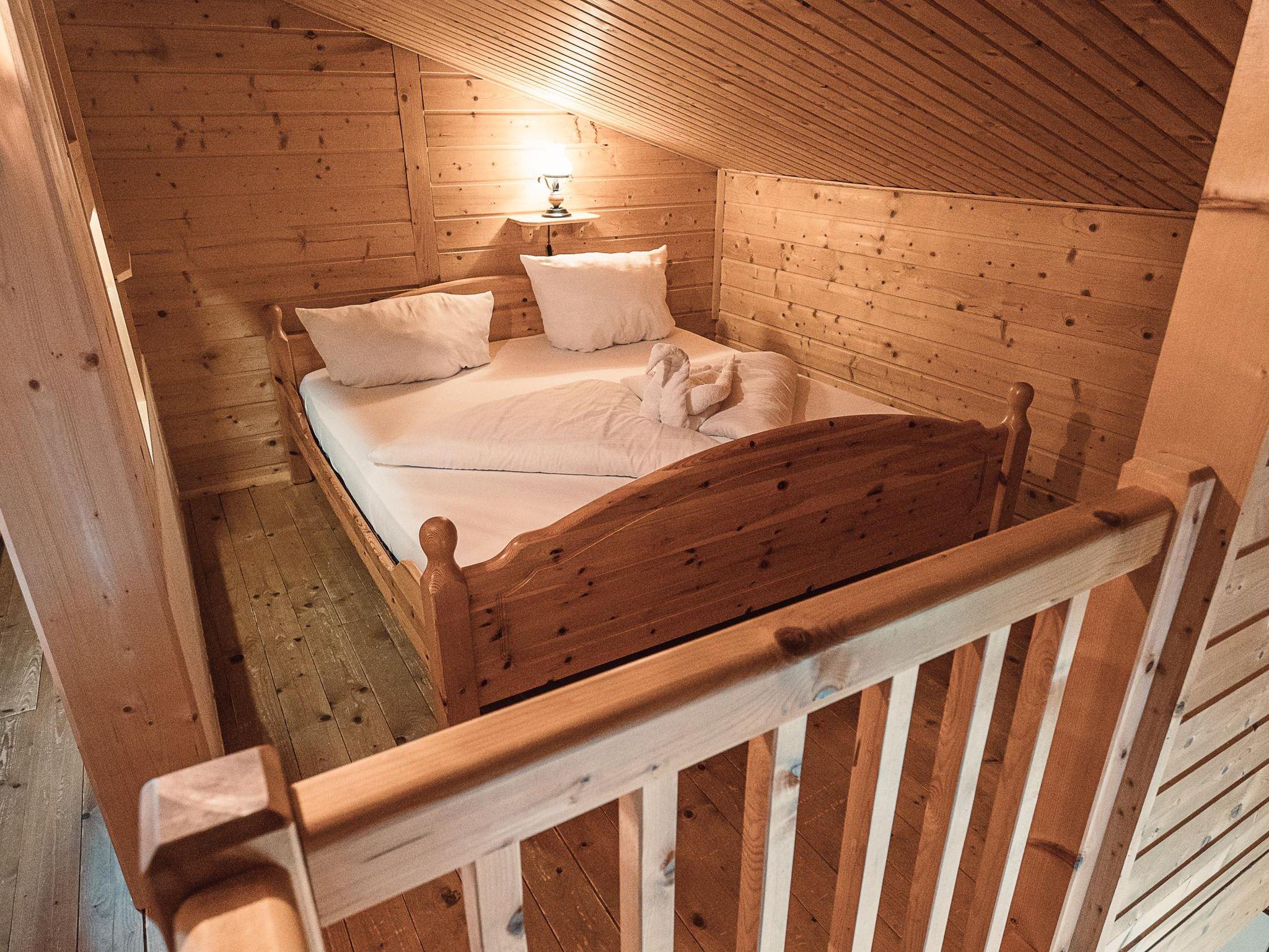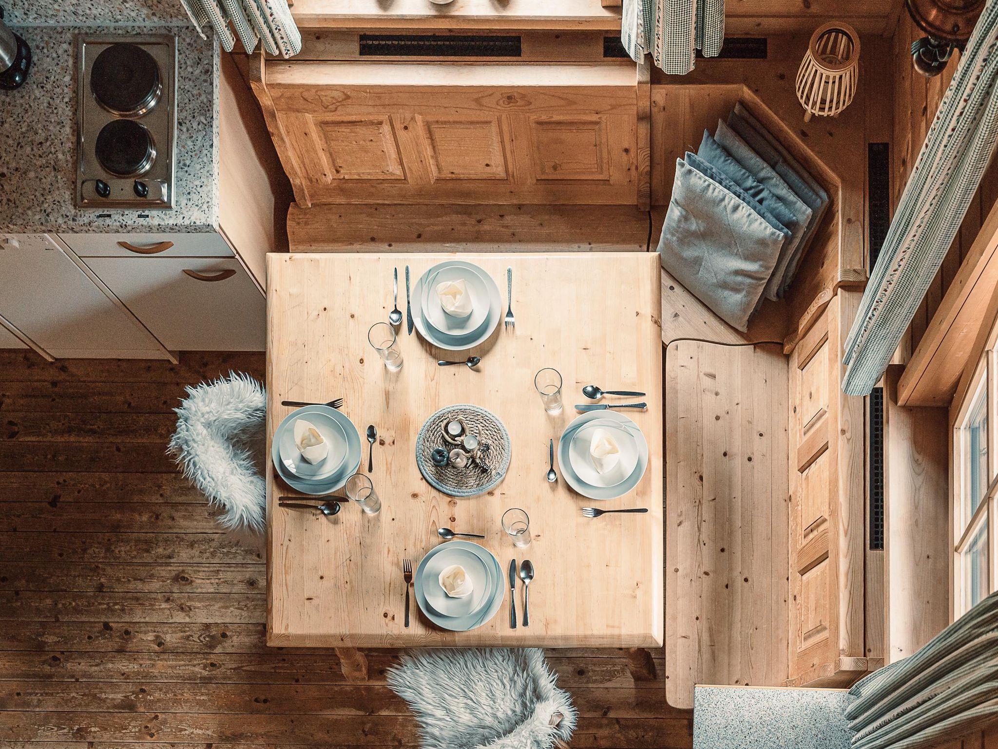 Almhütte Family & Friends – perfekt für größere Familien oder befreundete Paare: Im Erdgeschoss befindet sich ein separat abgetrenntes Schlafzimmer; darüber liegt ein offenes Galerieschlafzimmer, das nur durch eine Trennwand abgegrenzt ist (keine einzelnen Räume). Bei Bedarf auf Anfrage können zwei nebeneinander liegende Hütten zusammen gebucht werden – komfortabel für Gruppen von bis zu 12 Personen.