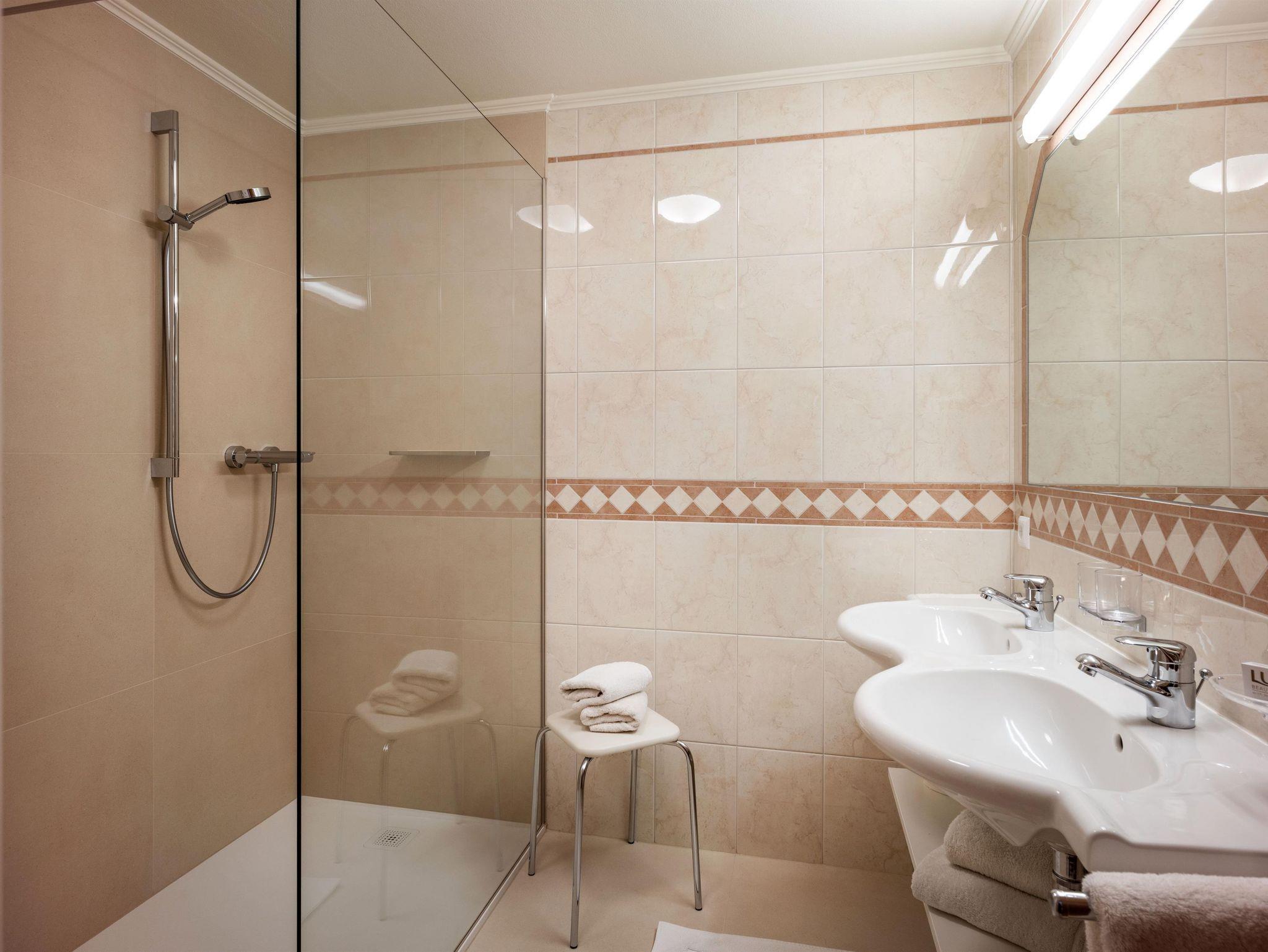 2 Doppelzimmer und 1 Einzelzimmer (Nichtraucher) mit DU/WC, Telefon, SAT-TV, WLAN, Radio, Zimmersafe, Fön und Balkon