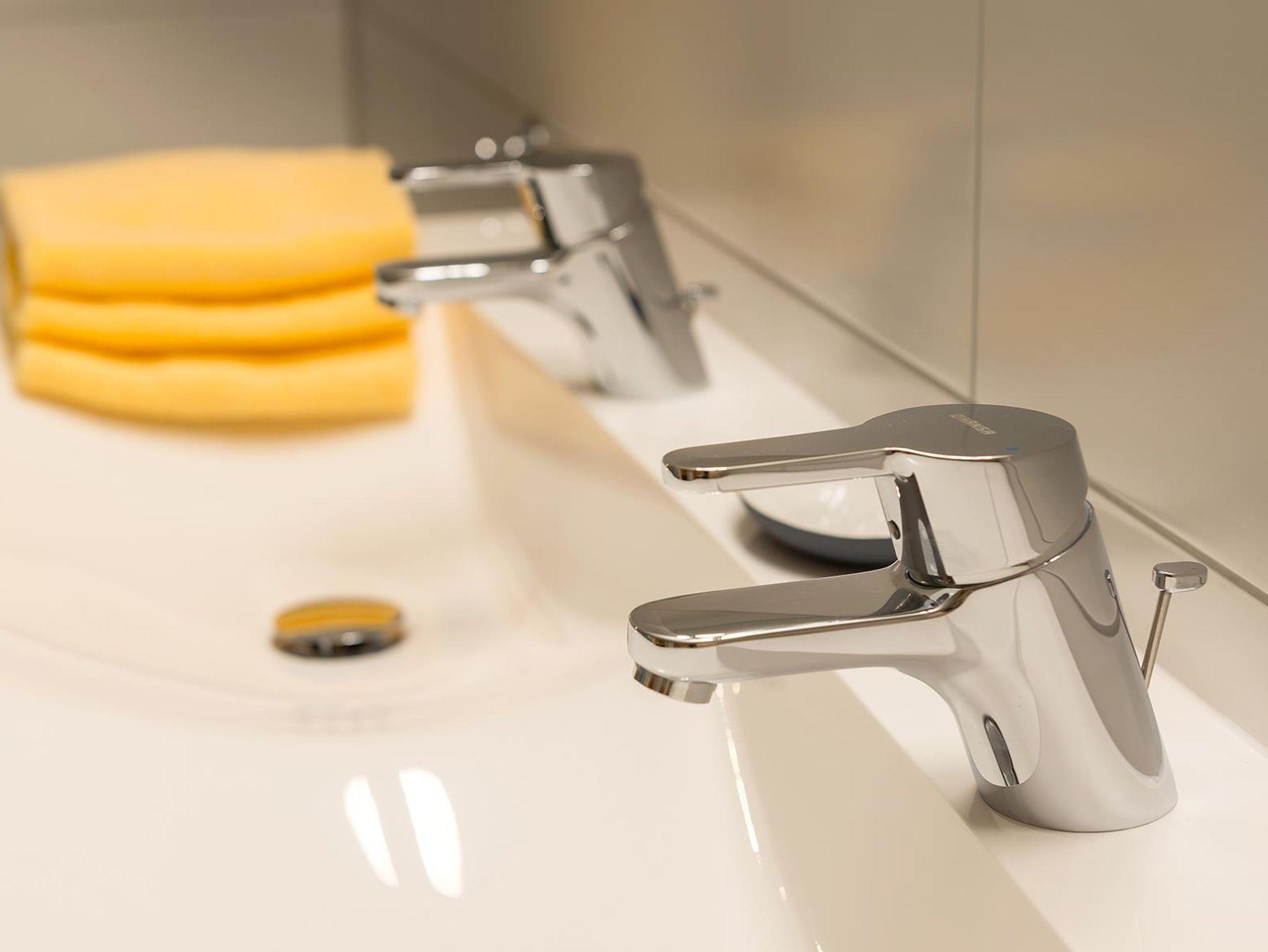 69 m² Apartment mit 2 Schlafzimmern, 1 Badezimmer mit Dusche/WC und separatem WC, modernes und bestens ausgestattetes Apartment im Erdgeschoss mit schöner Terrasse, geräumigem Wohnraum mit kuscheliger Sitzecke, Flachbildschirmen im Wohnzimmer und in jedem Schlafzimmer, DVD-Player, Stereoanlage, kostenlosem WLAN, komplett eingerichteter Küche mit Geschirrspüler, Kühlschrank mit Gefrierfach, Elektroherd mit Backofen, Mikrowelle, Kaffeemaschine, Wasserkocher, Toaster, Waschmaschine, Bügelbrett, Bügeleisen, kostenloses Brötchenlieferservice, 2 kostenlose Parkplätze auf Privatparkplatz