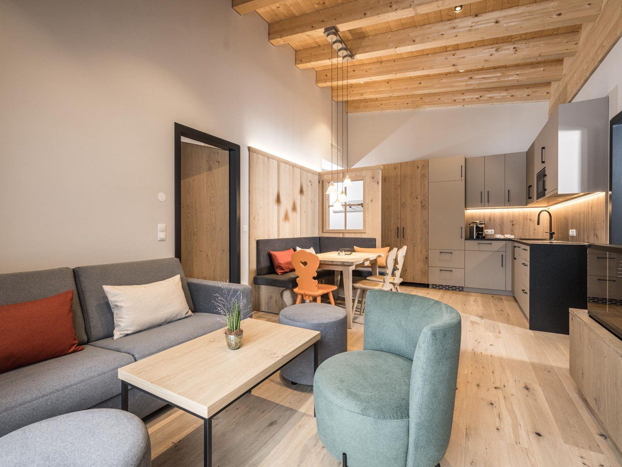 63 m², Master-Schlafzimmer mit Bad inklusive Badewanne und direktem Zugang zur Terrasse/Balkon mit bequemen Sitzgelegenheiten, weiteres King Size-Schlafzimmer, weiteres Bad mit separater Toilette, großzügiger Wohnraum mit Wohnküche, gemütlichem Essbereich und Wohnzimmer, komfortables Schlafsofa, The Flame™ Kaminfeuer für entspannte Stunden, Weinkühlschrank, Premium Vollausstattung mit hochwertiger Küche: Induktionsherd, Mikrowelle, Geschirrspüler, Kühl- und Gefrierschrank, Kaffeemaschine, Wasserkocher, weitere Geräte, Essbereich „Tiroler Eck“ zum gemütlichen Zusammensitzen, Flat-Screen TV in jedem Zimmer, High-Speed Internetverbindung, En-Suite Badezimmer mit Dusche und WC, Stellplätze in der Tiefgarage mit E-Ladestationen (First come, first serve)