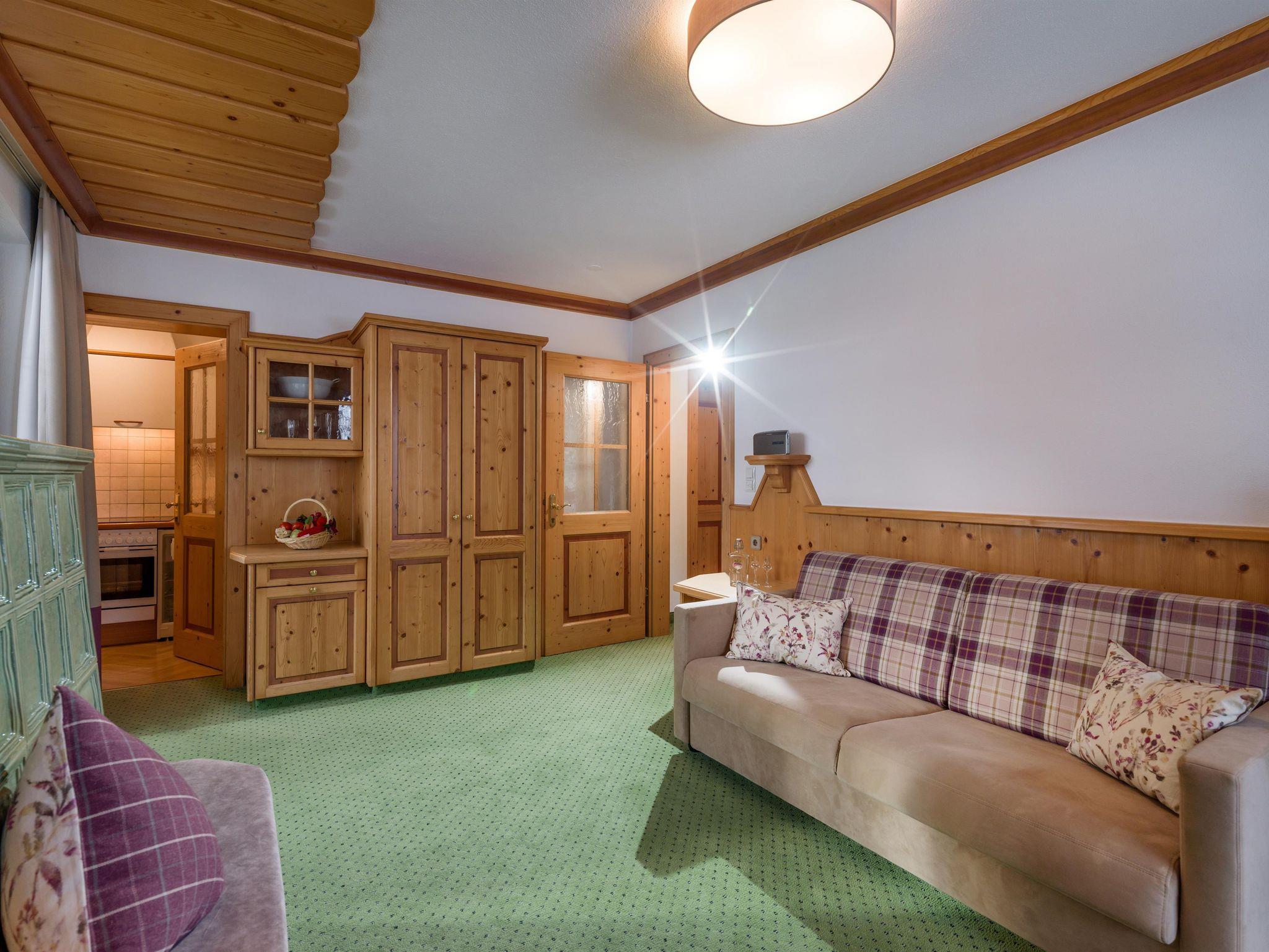 55 m² für 2-4 Personen, 1 kuscheliges Doppelzimmer, großer Wohnraum mit Schlafgelegenheit und Kachelofen, Küche mit Geschirrspüler (komplett eingerichtet), Badezimmer (Haarfön vorhanden), separates WC, SAT-TV (Flat-Screen), Radio, Safe, Balkon zur Morgensonne und überdachte Loggia zur Mittagssonne, Gratis WLAN, Bettwäsche- und Handtücherservice, auf Wunsch Brötchenservice, Hochstuhl und Babybett auf Anfrage
