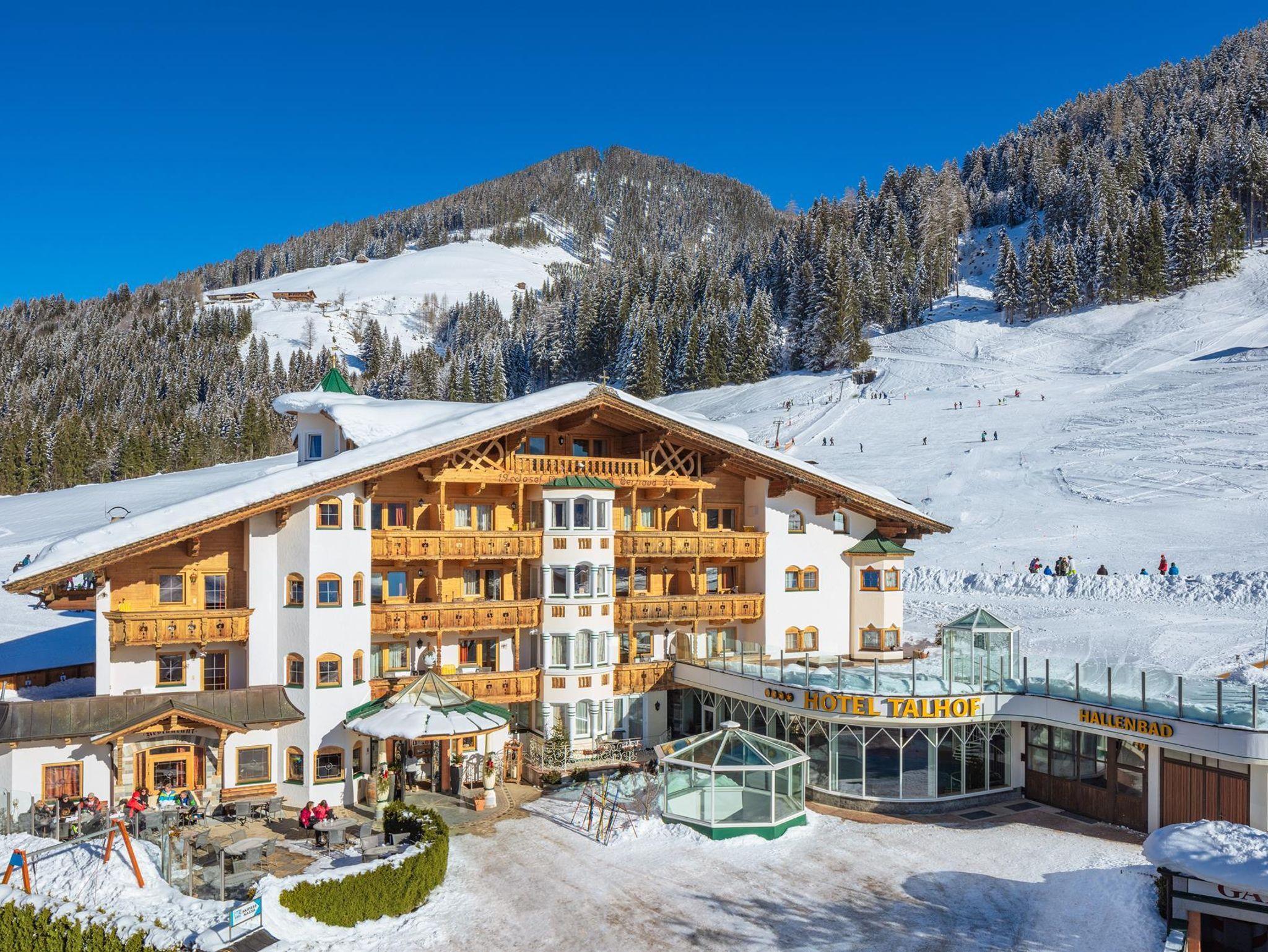 Das Apparthotel Talhof ist ei kleines 4 Sterne Familienhotel mit Hallenbad, Sauna, Damfpbad, Infrarotkabine, Relaxlounge, Ruheraum, Sonnenterrassse, Kinderspielräumen und hoteleigene Schafalm mit Natursee, direkt am 300 km Wandernetz am Sonnenplateau Roggenboden in den Kitzbüheler Alpen.