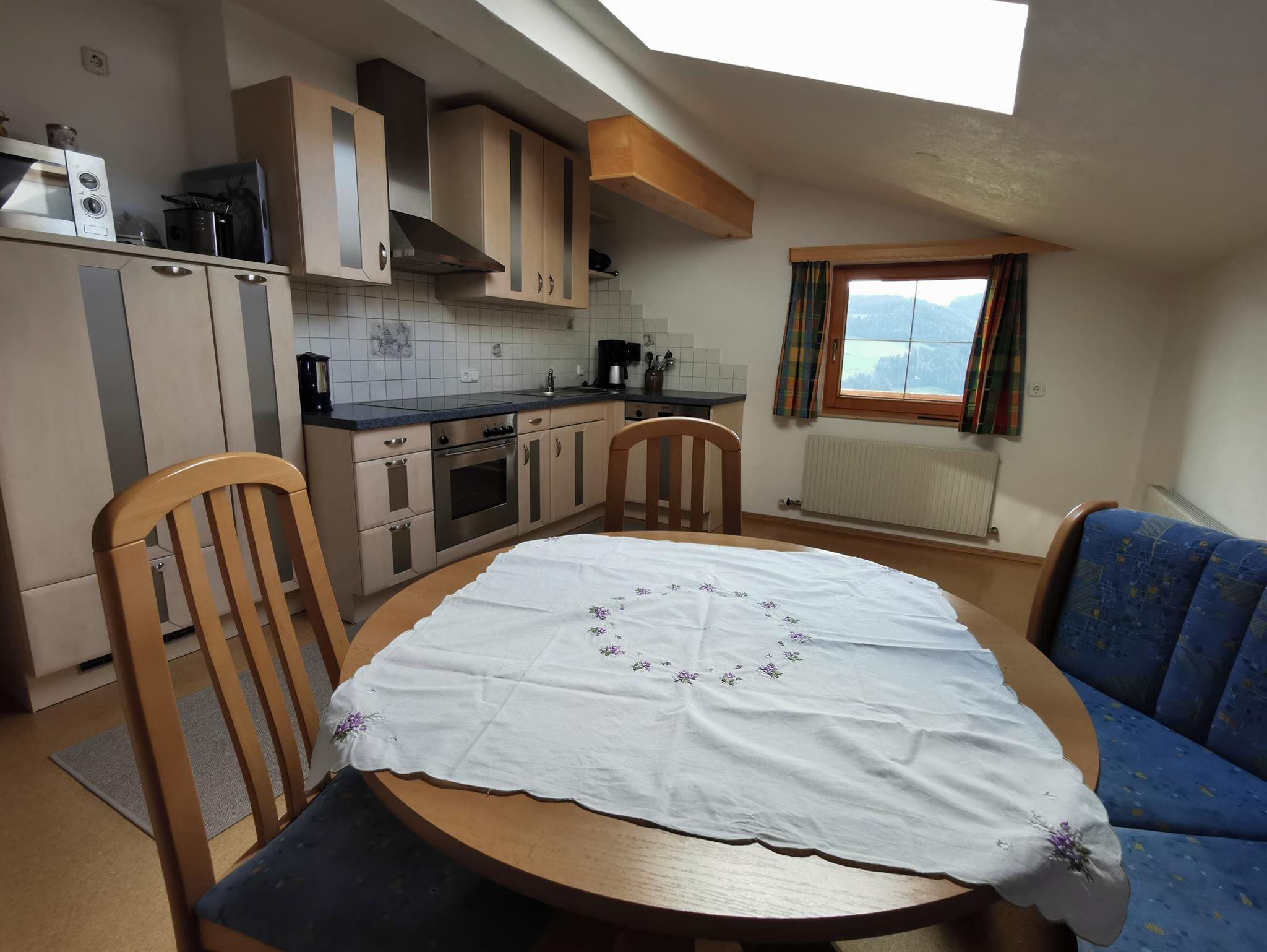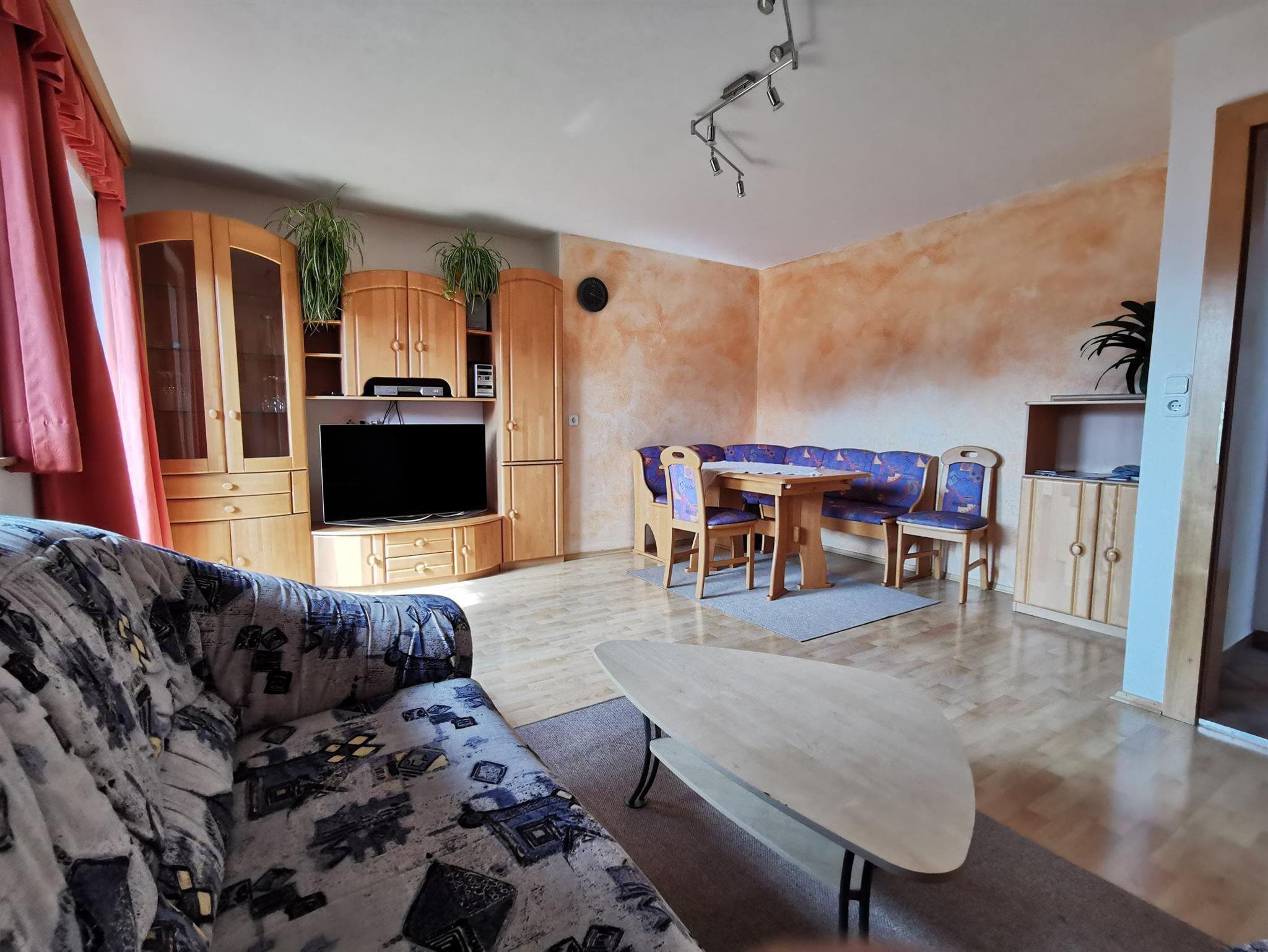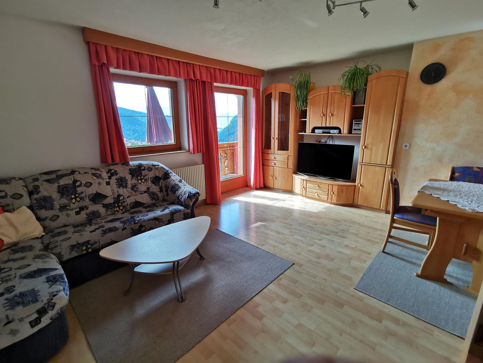 Die Ferienwohnung Gratlspitzblick liegt im 2. Stock mit zwei Balkonen (Ost und Südseite) - gerade ideal für einen Urlaub mit Ihrer Familie. Es sind Balkonstühle und Sonnenschirm vorhanden. Das Wohnzimmer ist gemütlich mit einer Couch, Wohnwand (SAT-TV, DVD, Radio und CD) und einer Essecke eingerichtet.