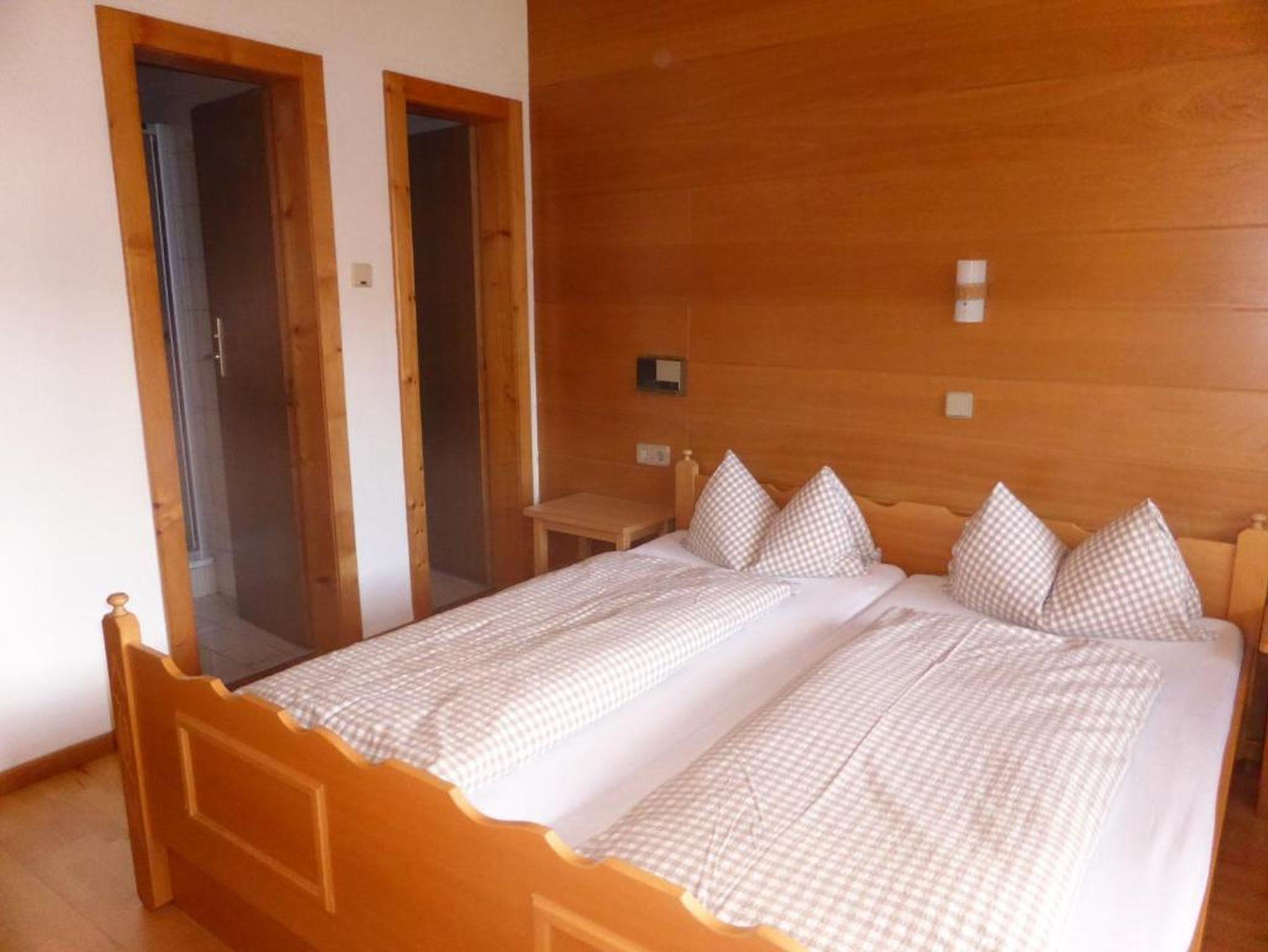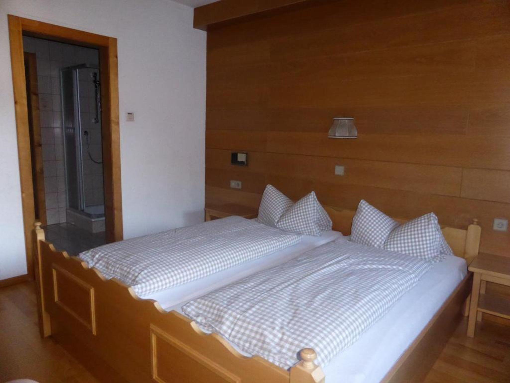 Unsere Zweibettzimmer am Schwaighof sind eher schlicht und einfach gehalten. Sie haben alle ein eigenes Bad. Des weiteren ist in den Doppelzimmern eine kleine Sitzecke. In den meisten Zimmern verfügt dass Zimmer über einen Balkon und einen schönen Blick auf die umliegenden Berge.